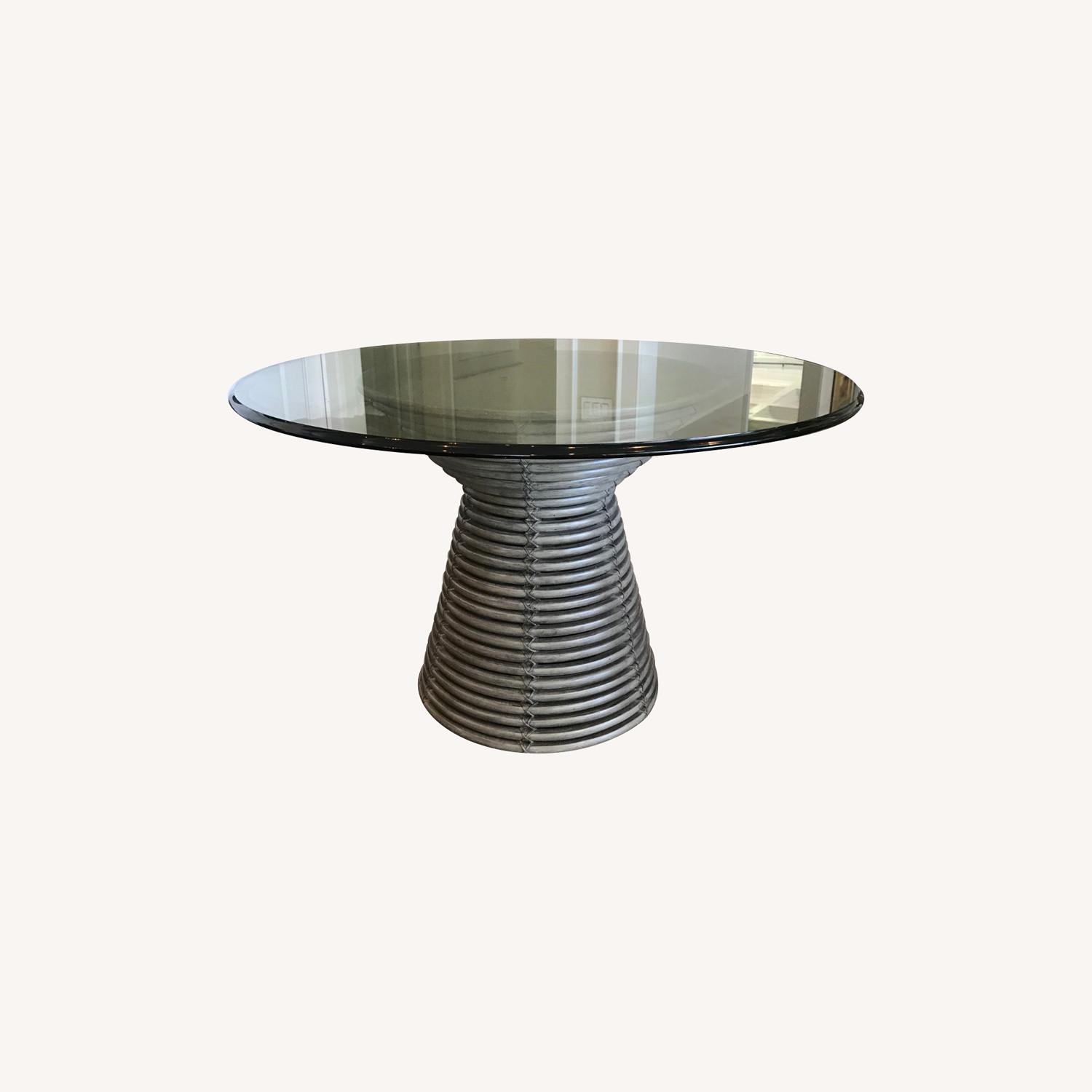 Seller's Notes:Beautiful, unique and neutral in color, this glass topped dining table can mix with several styles of chairs.