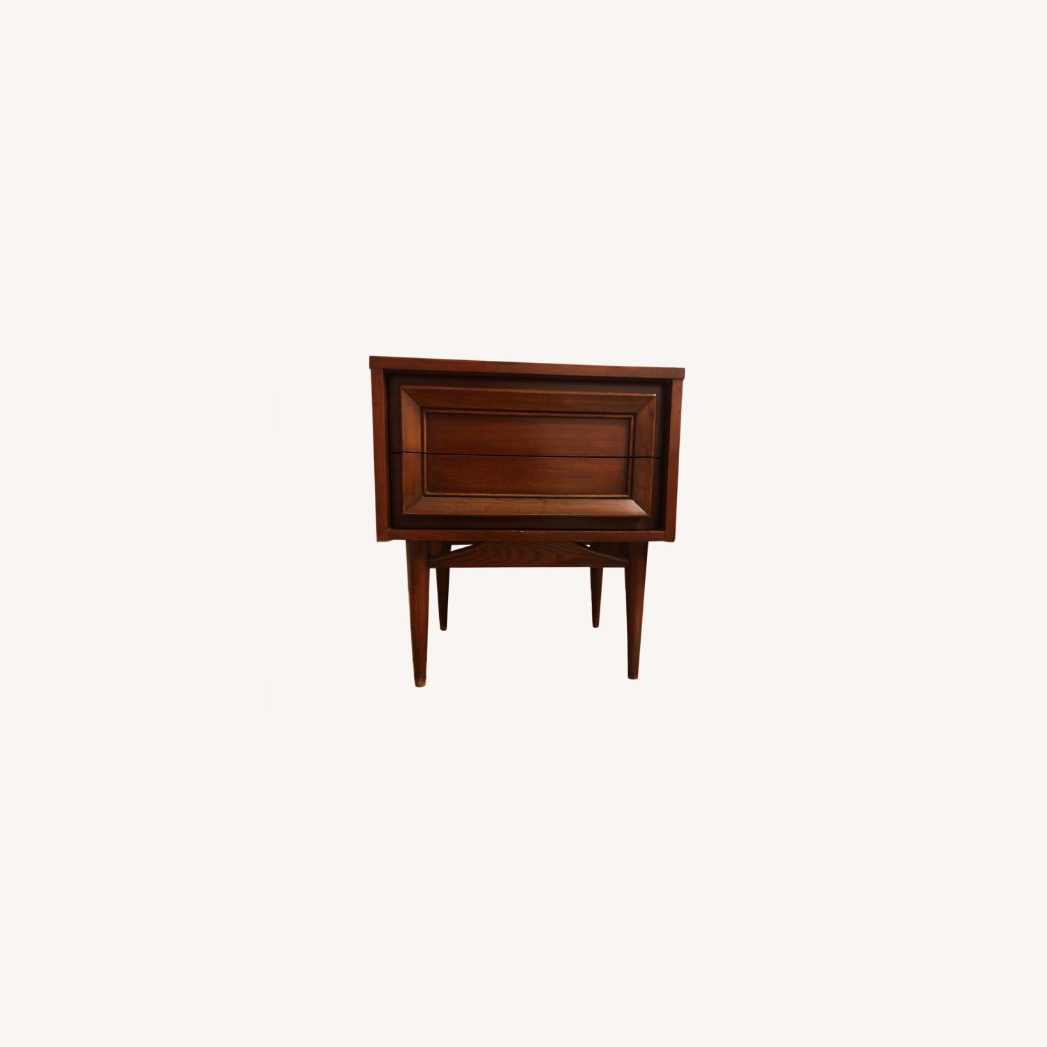 Seller's Notes:Charming vintage “Basic-Witz” Midcentury walnut side table / end table / night stand. We bought this in an antique store in the Hudson Valley but are moving and selling our mid century furniture collection. In very good condition with minor veneer damage as shown in photos. 24” Tall 15” Wide 10” Deep