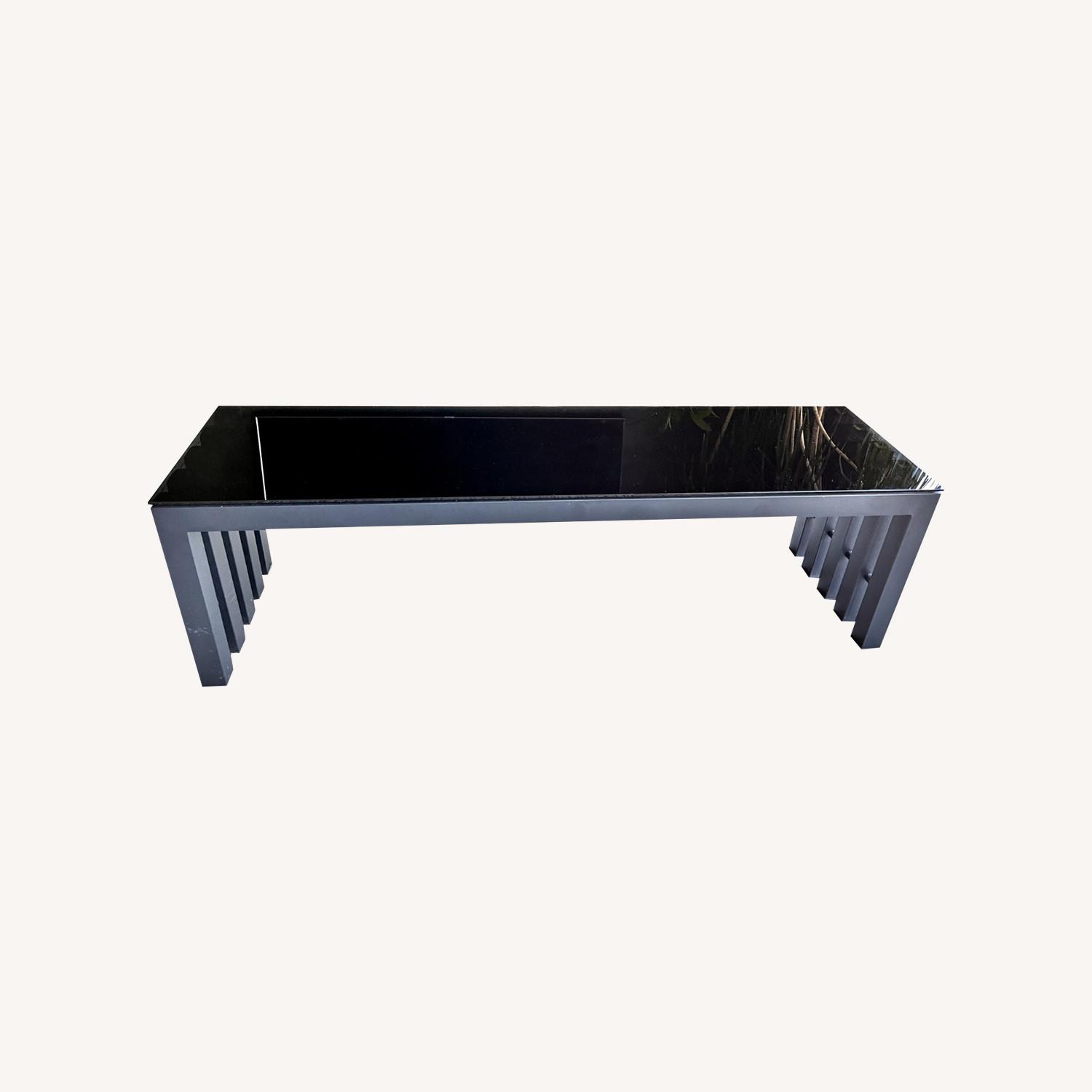Seller's Notes:A unique and versatile coffee table, custom-designed based on the renowned Pangea Home Black Lexter Metal Bench. Key Features: Design: Features a sleek black transparent glass top, adding a touch of modern elegance to the robust design of the Lexter Metal Bench, converting it into a versatile coffee table Versatility: Perfect for various activities - dine at the sofa, indulge in video gaming sessions, work comfortably, or simply let it stand as a stylish centerpiece. Functionality: The added glass top not only enhances its aesthetics but also provides a smooth surface, making it easy to clean and maintain. Statement Piece: Its distinctive design ensures it stands out, making it a conversation starter and a must-have for any contemporary living space. Seize the chance to own this one-of-a-kind coffee table that perfectly blends functionality with style.