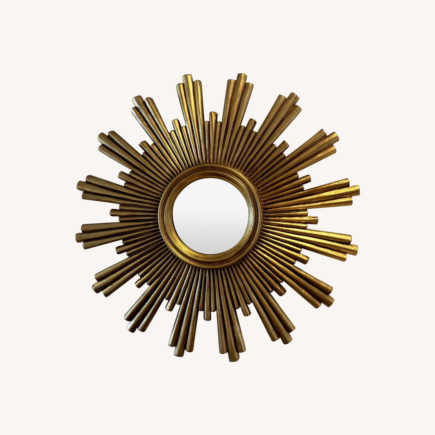 Seller's Notes:This mirror has been in our entry way for 5 years and is such a beautiful focal point! Gold sunburst detail with a center distressed mirror. In excellent condition!
