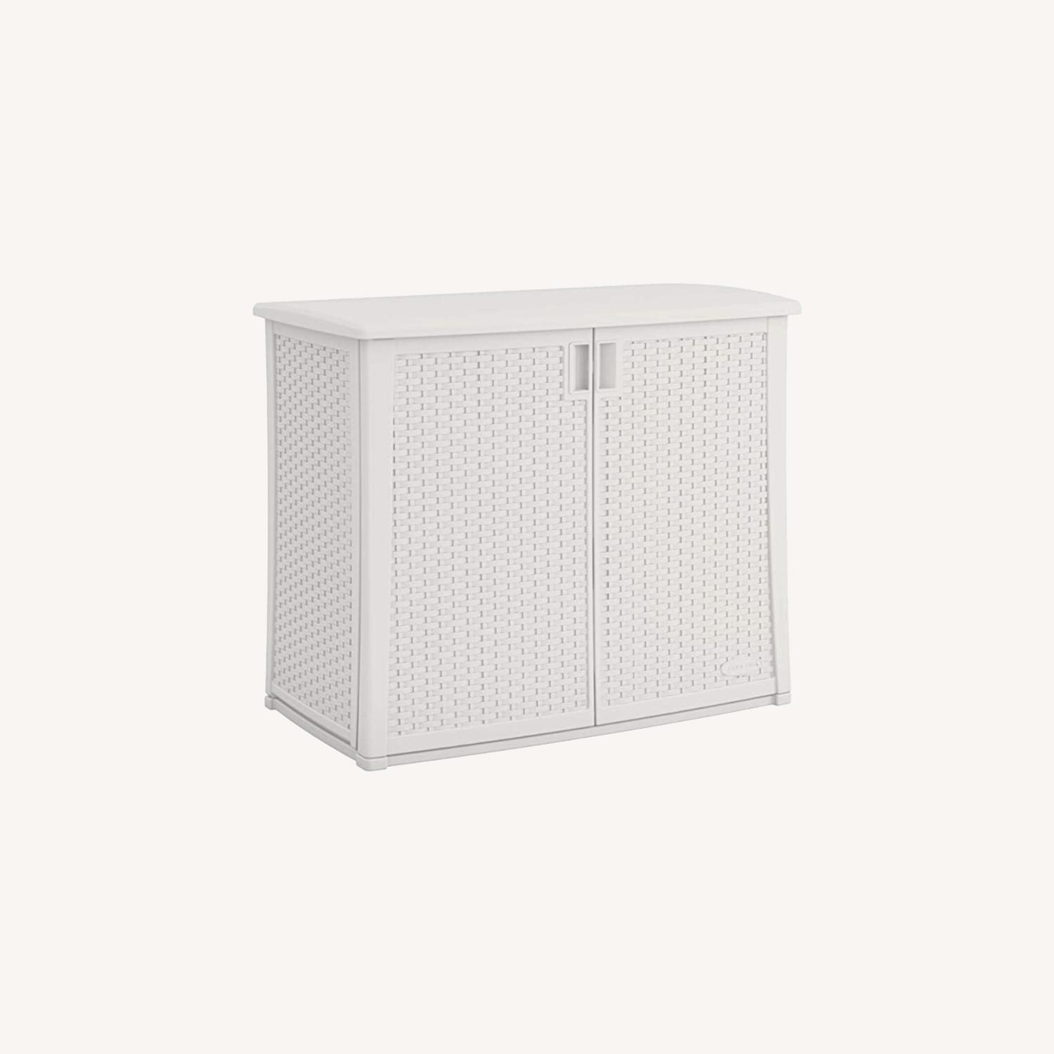 Seller's Notes:EVERYTHING MUST GO! MOVING STATES SALES ON ALL STUFF! AGE OF ITEM: 1.5 Years (Bought Jun 2020) ITEM DETAILS: Durable, multi-wall resin construction allows for year-round use and easy maintenance | Material is rust, rot and dent proof but not 100% waterproof. Product dimensions – 42.25” W x 23” D x 35.25” H | Interior dimensions – 37.25” W x 17.5” D x 32.25” H | Capacity – 97 gallon | Weight – 50 lbs. Assembly required | For use indoors or outdoors to store pool toys, grill supplies, patio cushions, gardening tools, sports equipment, yard gloves, and more! Includes an adjustable shelf for optimal housing of outdoor accessories | Rain water flows off of the box to keep your belongings dry and free from mildew and rust. Metal-reinforced, adjustable shelf increases organizational opportunities and allows easy access to everyday essentials | Sturdy, pad-lockable doors provide superior strength and security BACK STORY: We are in the midst of moving states, so everything in the house must go. If you are keen to get good furniture at very good prices, pls feel free to reach out. Click on my seller name to see all other great deals we are offering now. We are selling all the furniture in our house and there are quite a number of good items. It is too troublesome for us to ship the stuff over and would rather just buy new ones when we have moved. Too much hassle especially with my kids to manage while moving. Would love them to go to someone who can appreciate them. Hope that they can find new owners soon. :) MAINTENANCE & CARE: Bought it 1.5 years ago, very well maintained. Just need to clean it to make it white. DELIVERY: You can opt for the services from AptDeco, which is pretty decent price or try to take it yourself from my place. 7 Wilson pl, Closter NJ 07624.