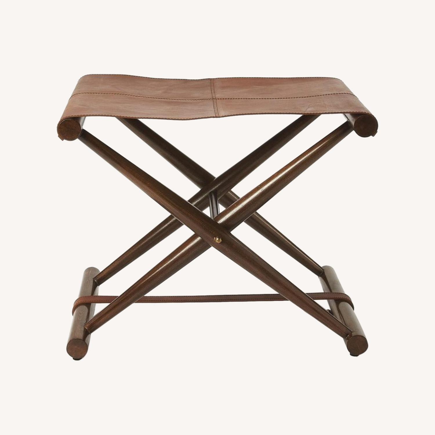 Seller's Notes:Leather meets wood for a smiple folding seat. Its carefully stitched warm brown leather seat is supported by soild Meranti and Shorea wood base, and folds for easy portability and storage.