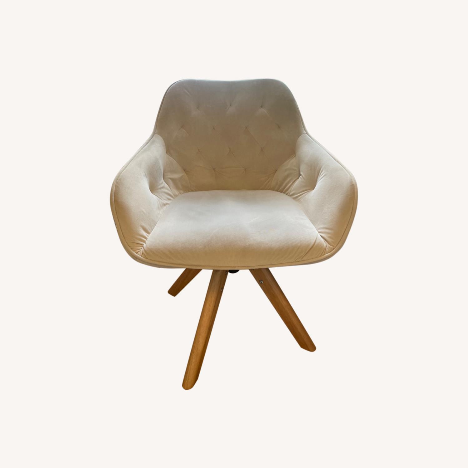 Seller's Notes:Wooden legs and soft fabric accent chair for office or bedroom or both. I have used this chair for my desk for the past year and it has worked great, very comfortable.