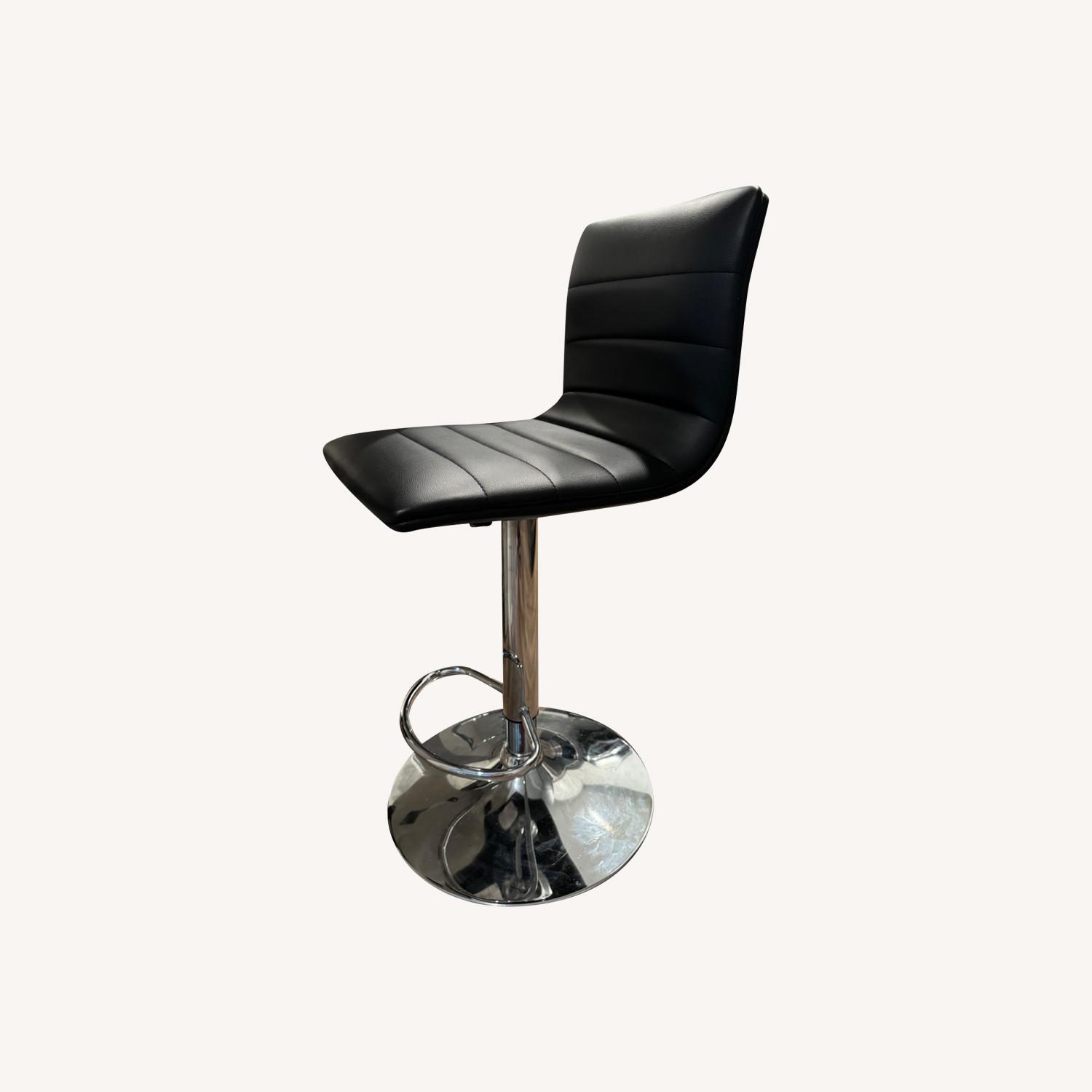 Seller's Notes:Wade Logan Alexandrea Swivel Adjustable Height Bar Stool. Black faux leather, set of 3. Great condition