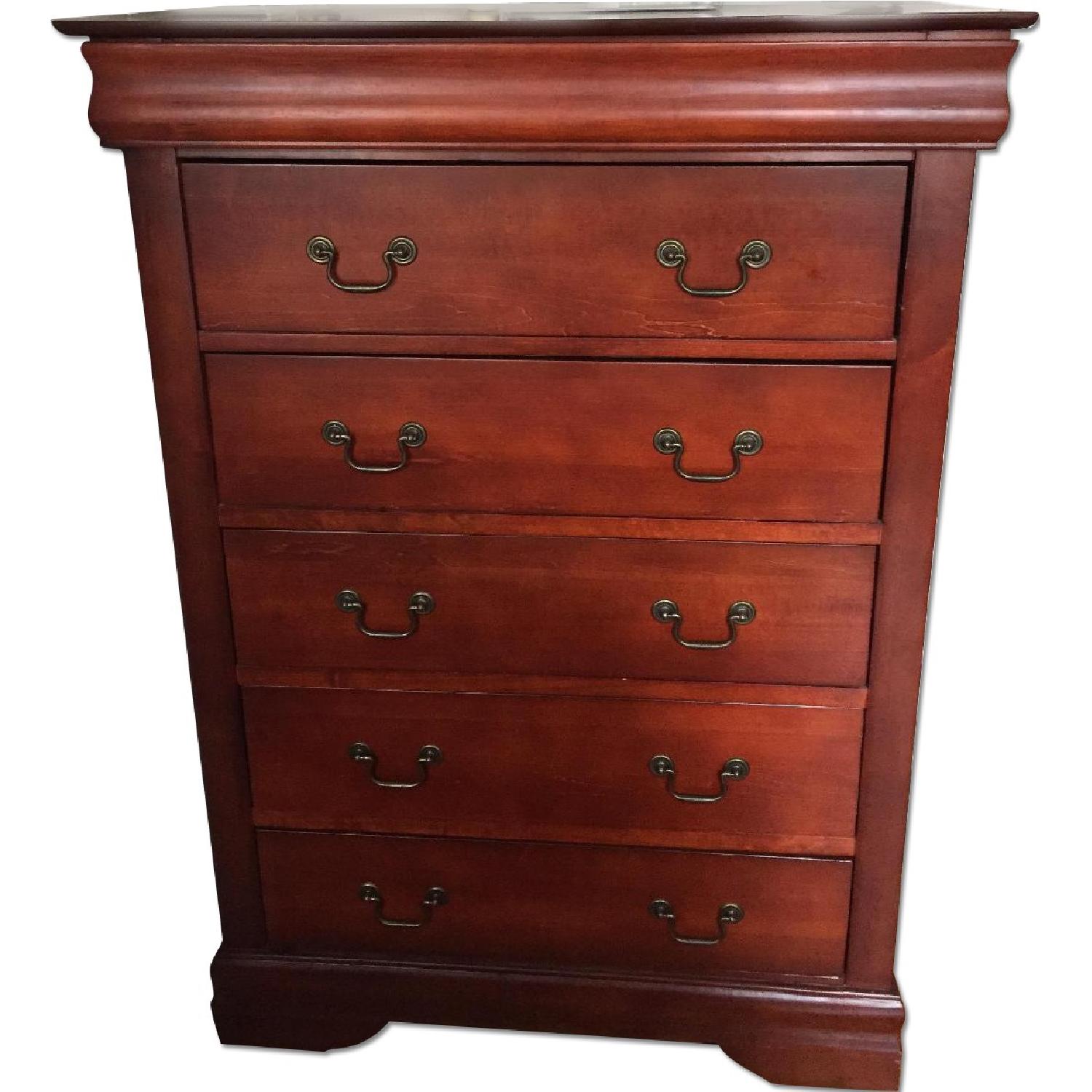 Seller's Notes:Moving on Friday. Great tall wood dresser for sale! There are five large drawers and one smaller, velvet lined one at the top. 52 x 30 x 16