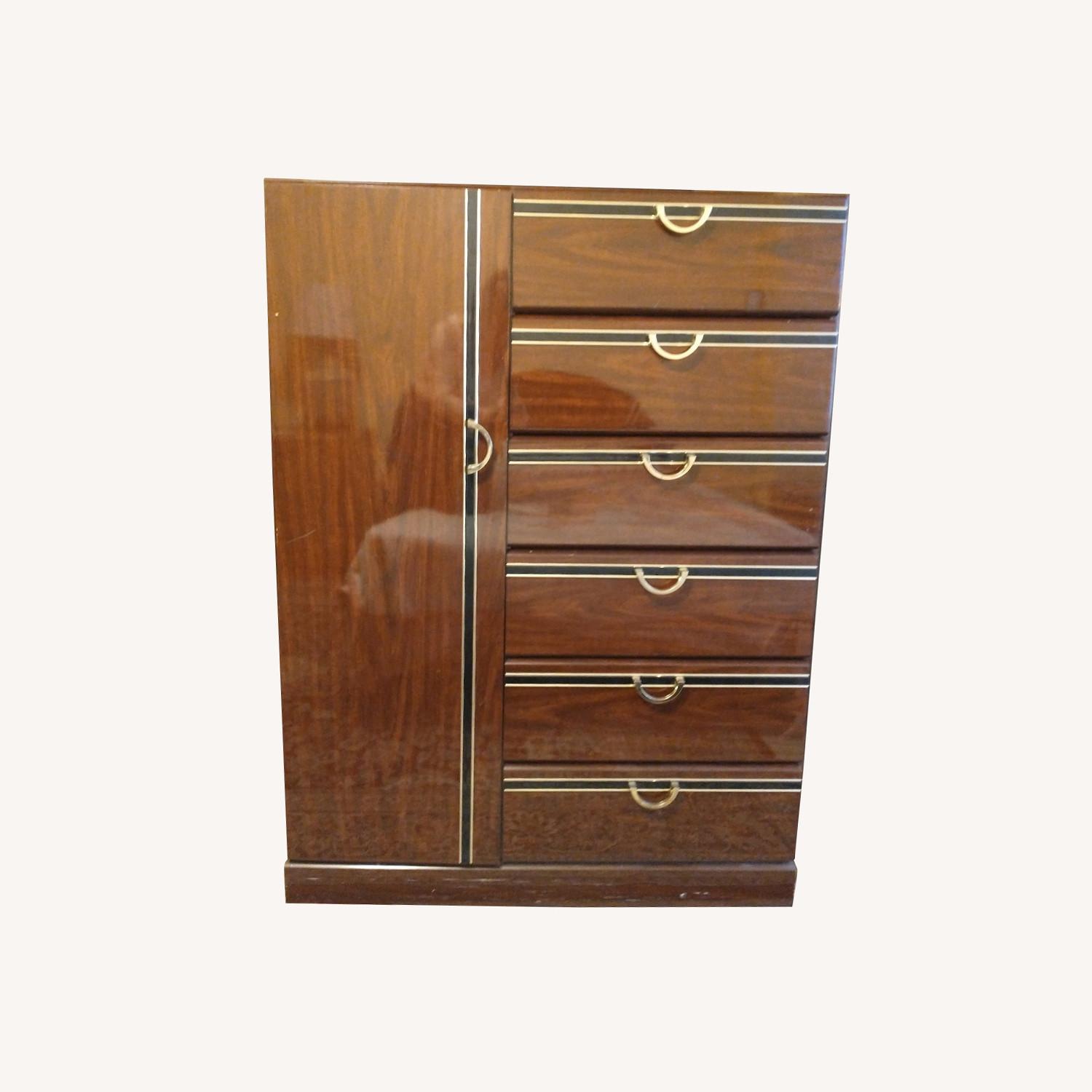 Seller's Notes:Art deco design with glossy finish. Plenty of drawers and shelves on the left.