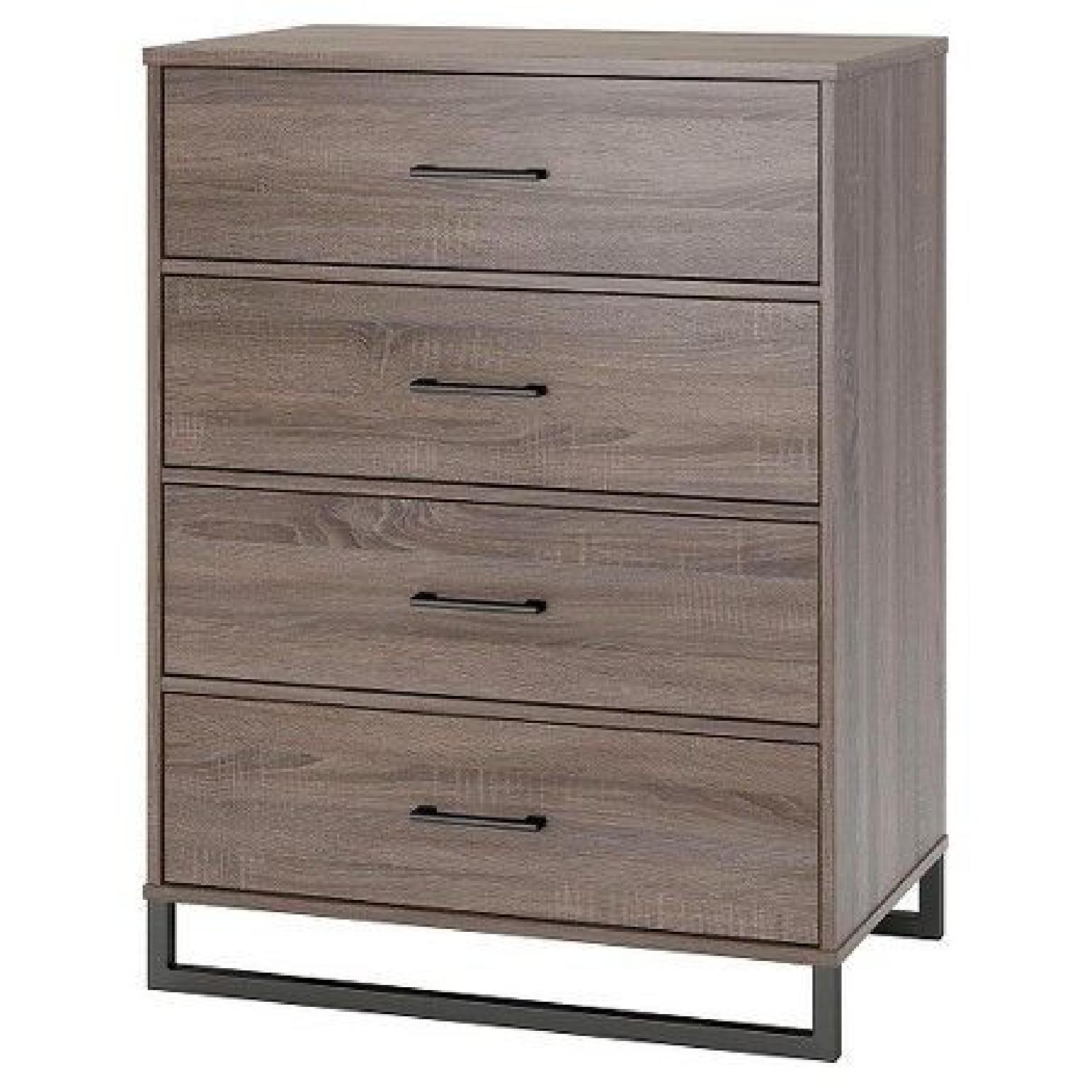 Seller's Notes:Beautiful, Mixed Material 4 drawer dresser for sale. No damage - normal wear and tear - just no longer goes with my aesthetic :). Greyish and medium brown wood grain finish. Durable and modern. Dresser already assembled.