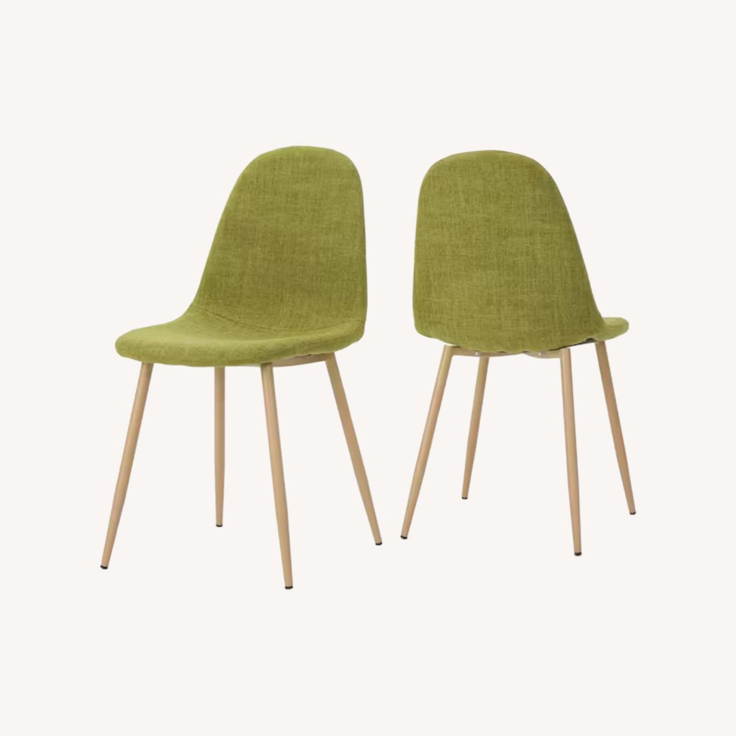 Seller's Notes:Set of two green upholstered dining chairs. In great used condition.