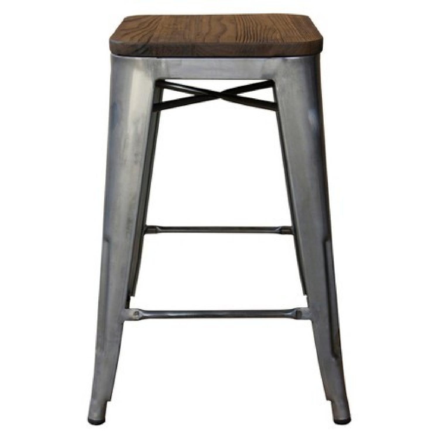 Seller's Notes:Set of 2 counter height stools. Wood top with iron legs.