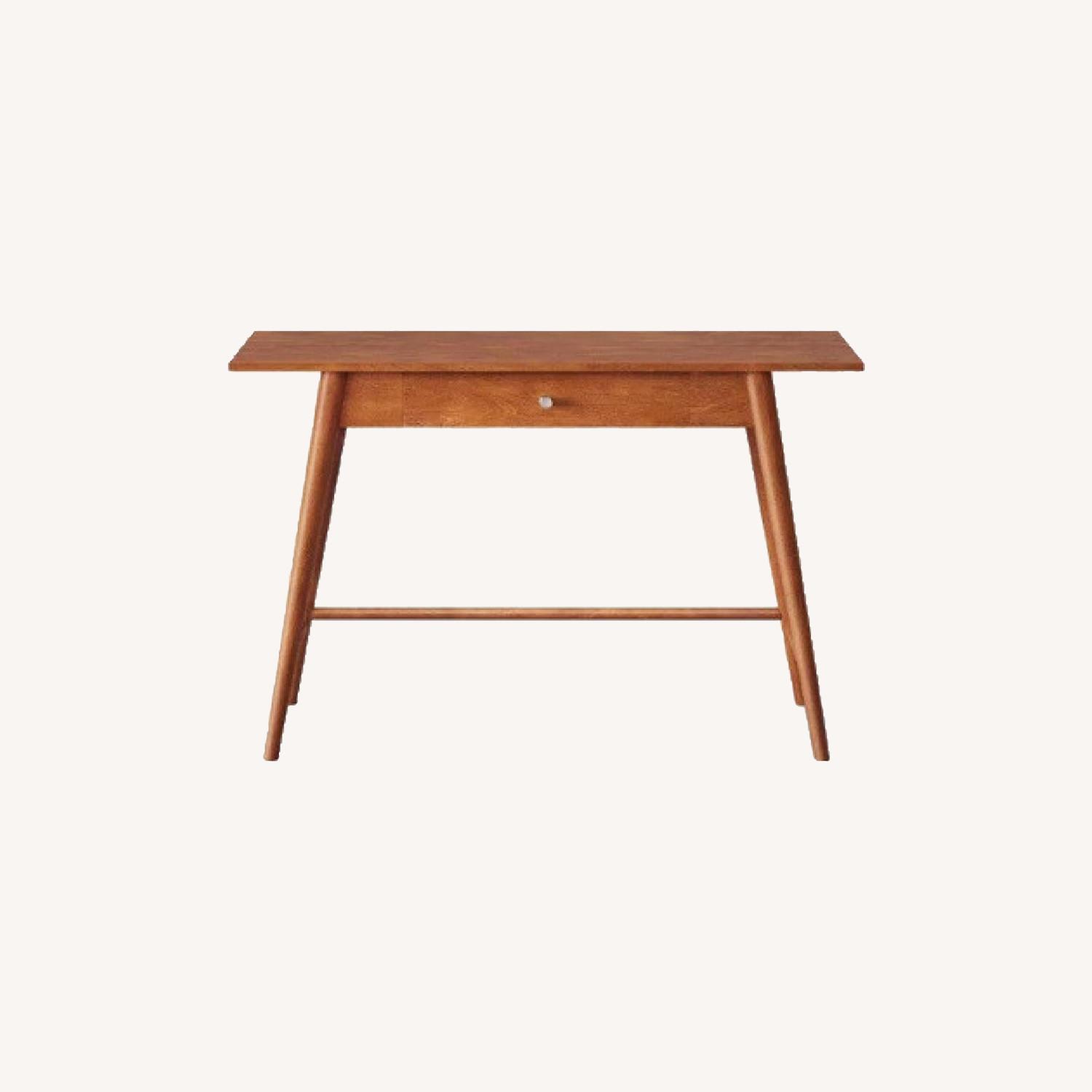 Seller's Notes:Bought this a few months ago, but have remodeled since and does not work in the space. Used maybe 1-2 times, great condition! Plus it's already assembled! From Target: Keep your style modern and casual with the Amherst Mid-Century Modern Desk/Console Table from Project 62™. Whether you use it as a writing desk in your home office or a console table in your living space, the warm finish is sure to help create an inviting atmosphere. Add a table lamp and your favorite photos to bring a personal touch.