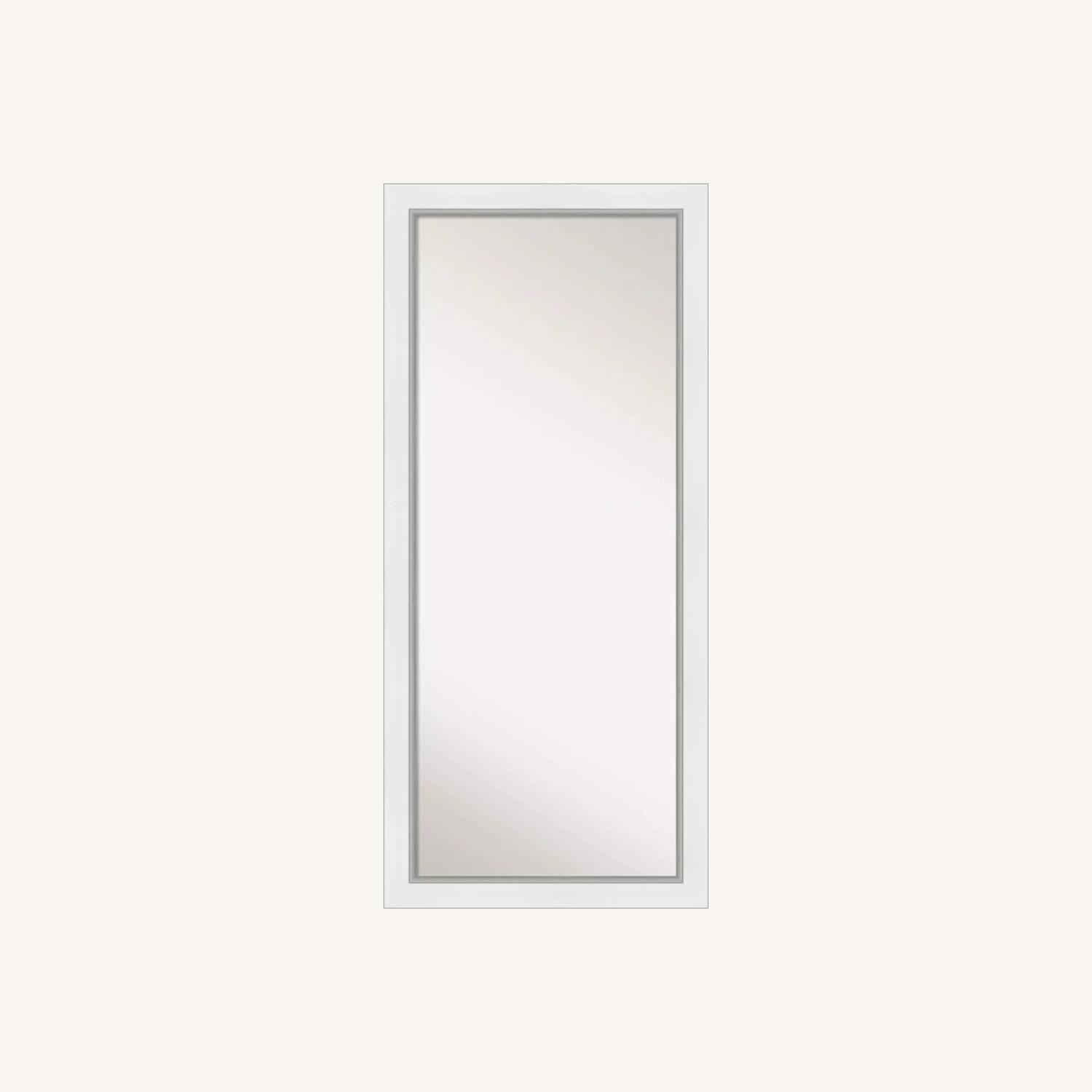 Seller's Notes:FRAME DETAILS: The Eva White Silver frame is a smooth, matte white, wide flat frame with a polished silver edge and recessed inner lip. The frame is 3 in. wide and stands 1.25 in. off the wall.