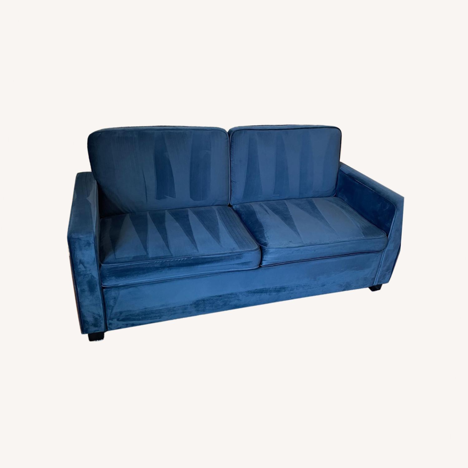 Seller's Notes:Only used this a handful of times. The sleeper portion pulls out into a full-size bed and is very comfy. Cushions in perfect condition! Only had this in a home with pets for a few days before moving. Feel the difference in lounging and resting with the Room & Joy Cassidy Sofa Sleeper. The Cassidy is the epitome of comfort with modern design that compliments any living room interior. For the design, the Cassidy is draped in lush velvet fabric that brings out a soothing and luxurious appeal while the piping details highlight the clean boxy profile of the sofa. For comfort, the wide track armrest design coupled with independently encased coil cushion provide you utmost comfort throughout daily uses. By day, it serves as a comfy sofa for you to relax on and watch TV or work; by night, it can be effortlessly converted into an extra bed for you or your guests to rest on. Available in various sizes to accommodate your living space. The stylish design and functional value makes the Cassidy Sofa Sleeper a must have furniture piece for your sweet home!