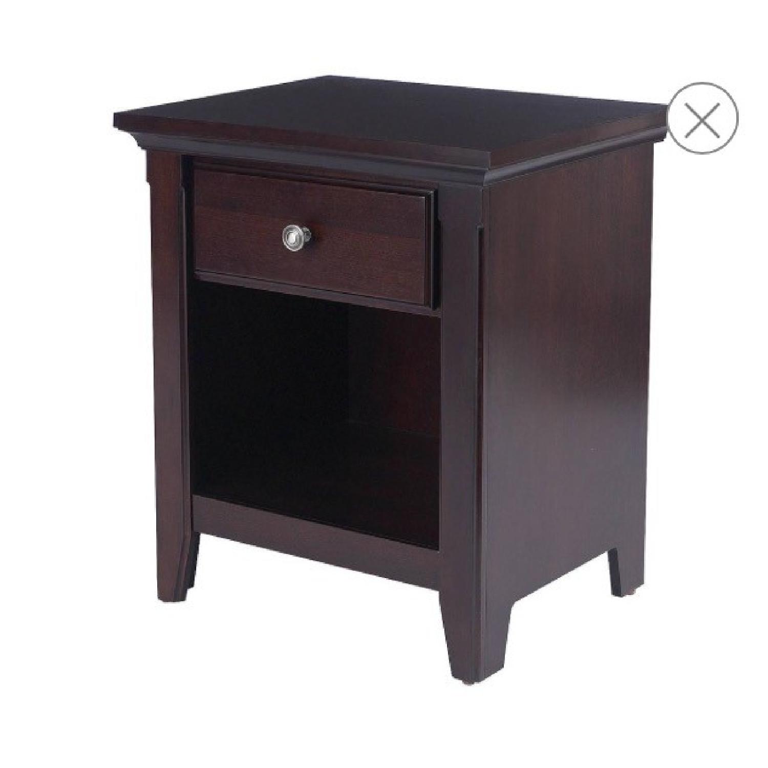 Seller's Notes:Classic style, functional design. The Threshold Avington Side Table in Dark Tobacco includes a drawer and an open shelf, so you can display magazines, books and other items on the open shelf and keep valuables handy. The drawer is equipped with a cam lock; the modern design is build with veneer hardwood and MDF for durability. Lacquered dark tobacco finish; coordinates with other furniture pieces of the Avington Living Room Collection. Wipe clean with damp cloth. Number of Pieces: 1 Features: Storage Frame Material: Hardwood Hardware Material: Metal Tabletop Material: Wood Veneer, MDF Metal Finish: Nickel but I changed the knobs to crystal (I have original knobs) Wood Finish: Tobacco Surface Material: Wood Veneer Finish: Lacquered Number of Drawers: 1 Number of Shelves: 1 Accessories Included: Hardware Certifications: CARB Certified Care and Cleaning: Wipe Clean with a Damp Cloth Dimensions: 25.375 inches H x 22.000 inches W x 18.125 inches D Weight: 35.270 pounds Tabletop Thickness 9.000 millimeter Table Base Dimensions: 50.000 millimeter H x 466.000 millimeter W x 402.000 millimeter D Interior Drawer Dimensions: 125.000 millimeter H x 431.000 millimeter W x 332.000 millimeter D