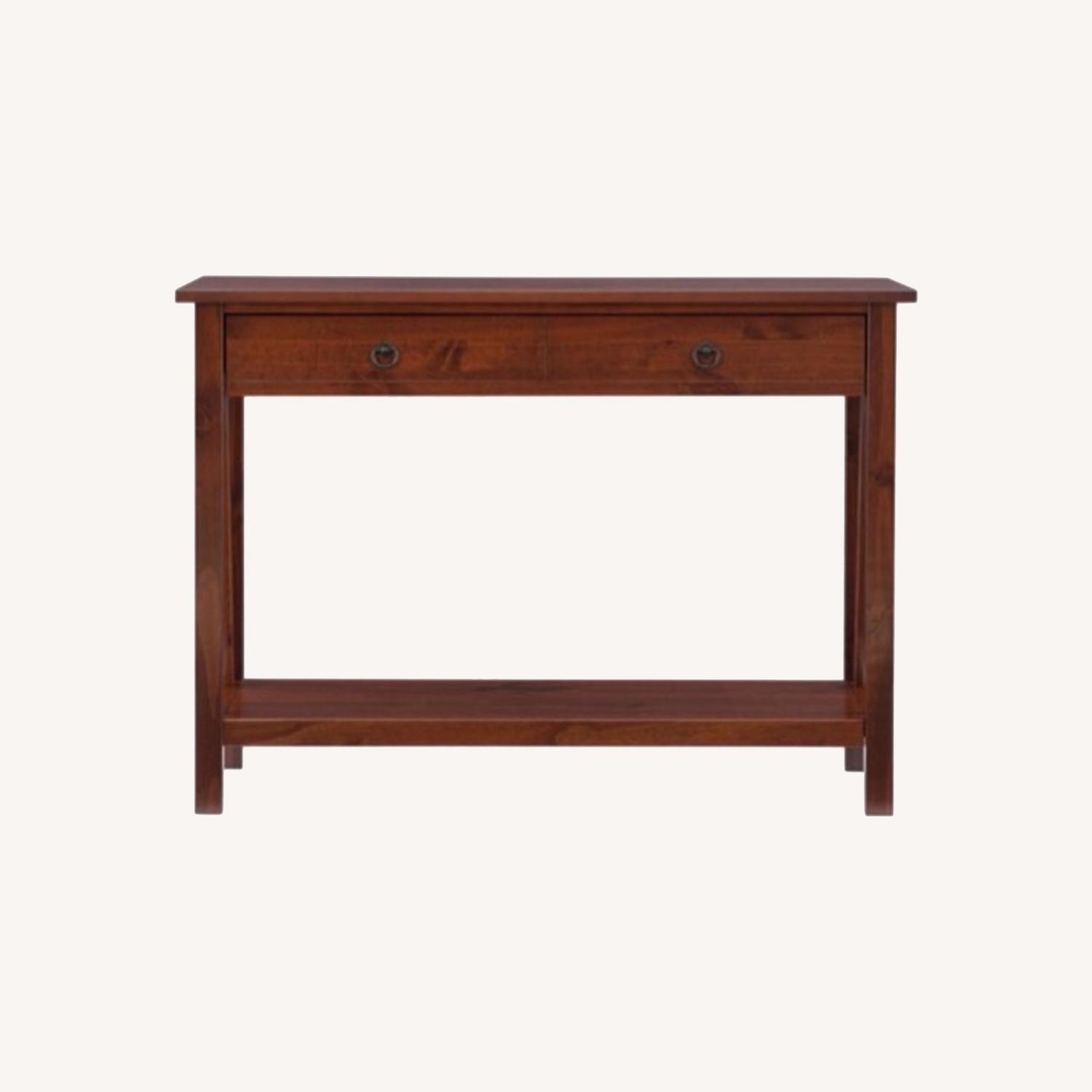 Seller's Notes:Brand new, console table in a mahogany color with front drawer. Purchased from Target.com for $150+ tax. This was assembled and then realized it didn’t work in my space. Never used. it looks like a much more expensive piece of furniture.