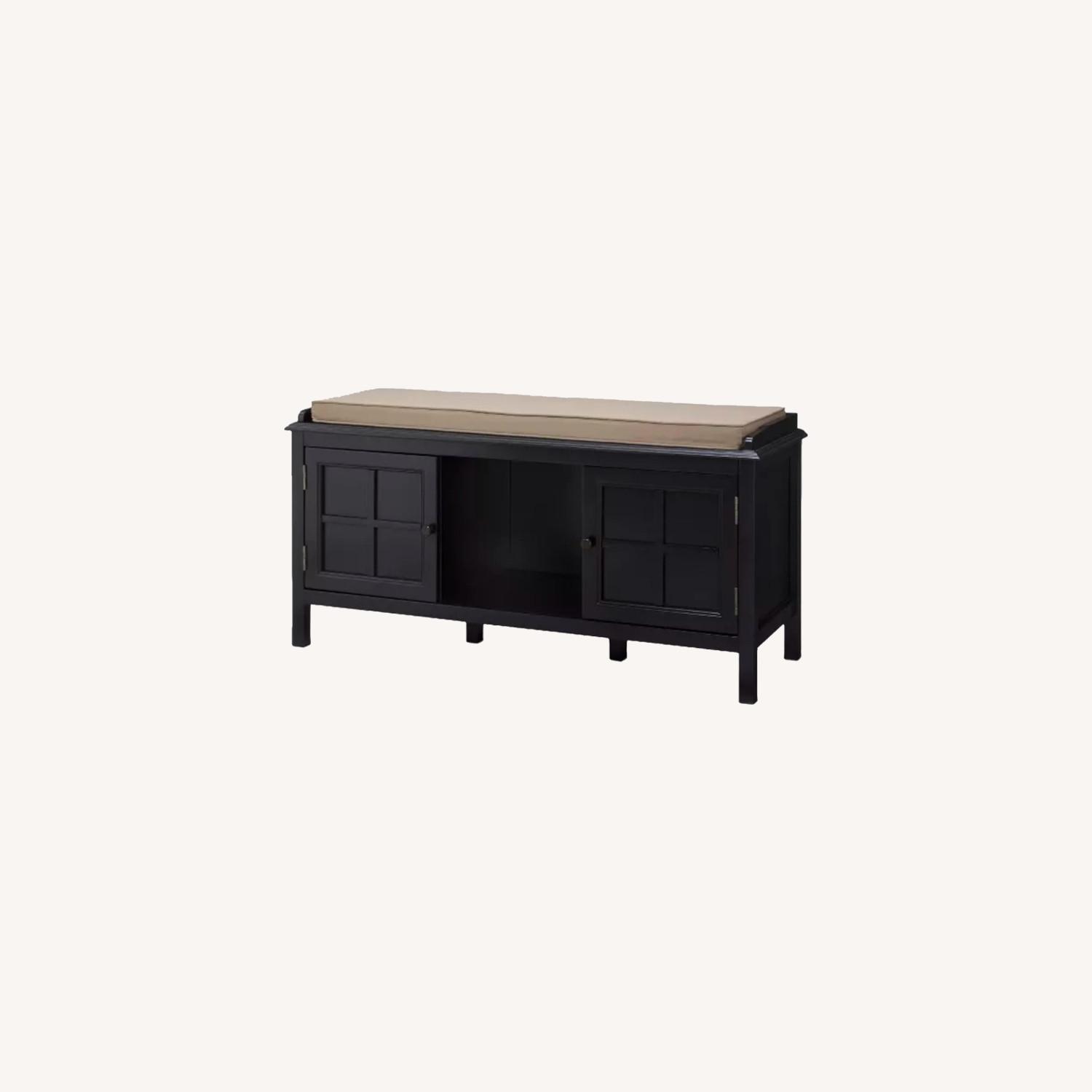 Seller's Notes:Bought this bench for our entryway -- it has a comfy seat cushion on top (can be switched out to one of your choosing), two cupboard type storage cubbies and one open cubby. It has been the perfect size and stores a surprising number of items! I'm moving and this no longer goes with the color scheme -- sad to part with such a useful piece of furniture! (If $150 is too high, message me here and we can discuss best offer)