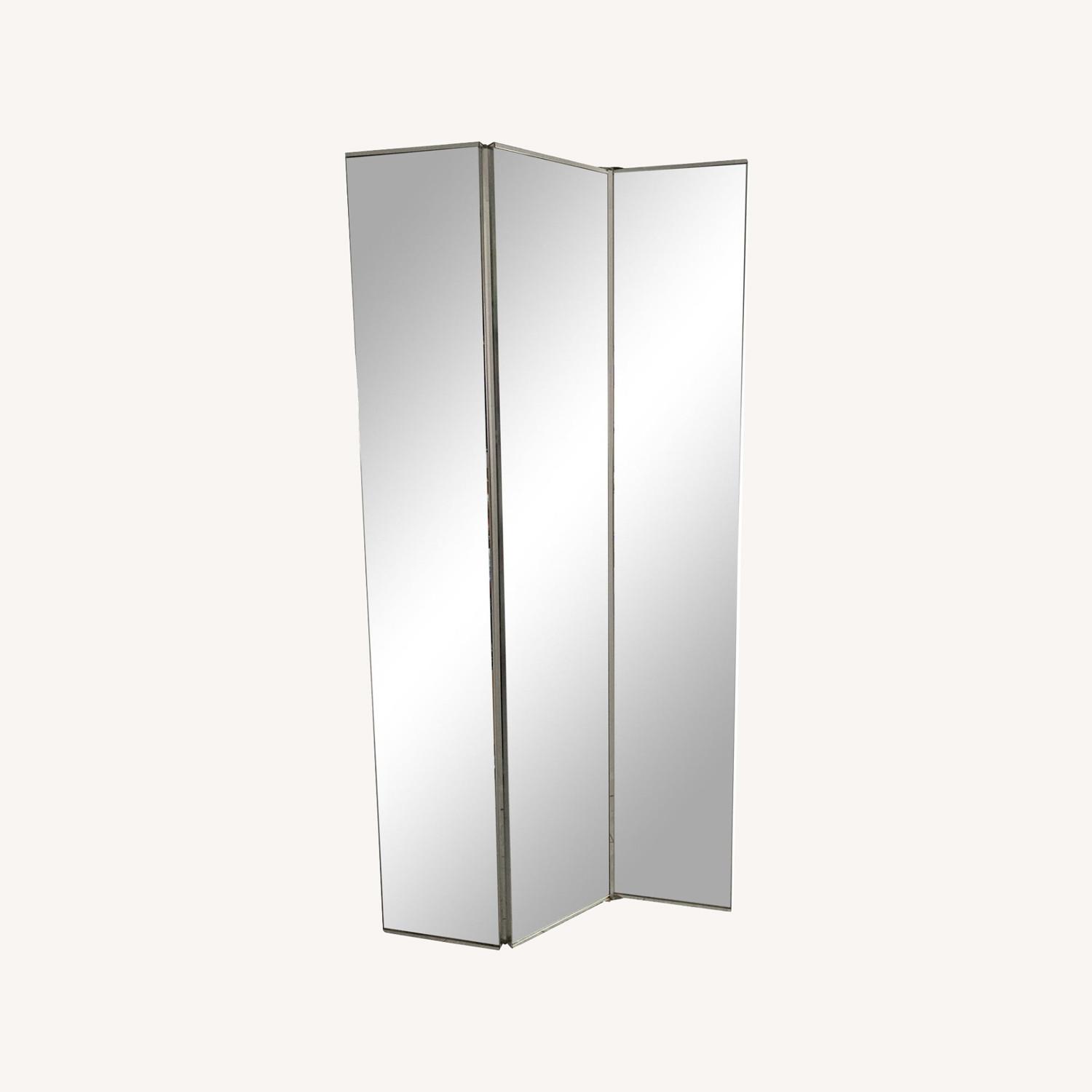Seller's Notes:Stunning trifold chrome-framed mirrored screen. Custom-made in the 90s by a local glass and mirror shop. Each chrome-framed panel is 14 inches wide, 7 feet high and 1-1/4 inches deep.