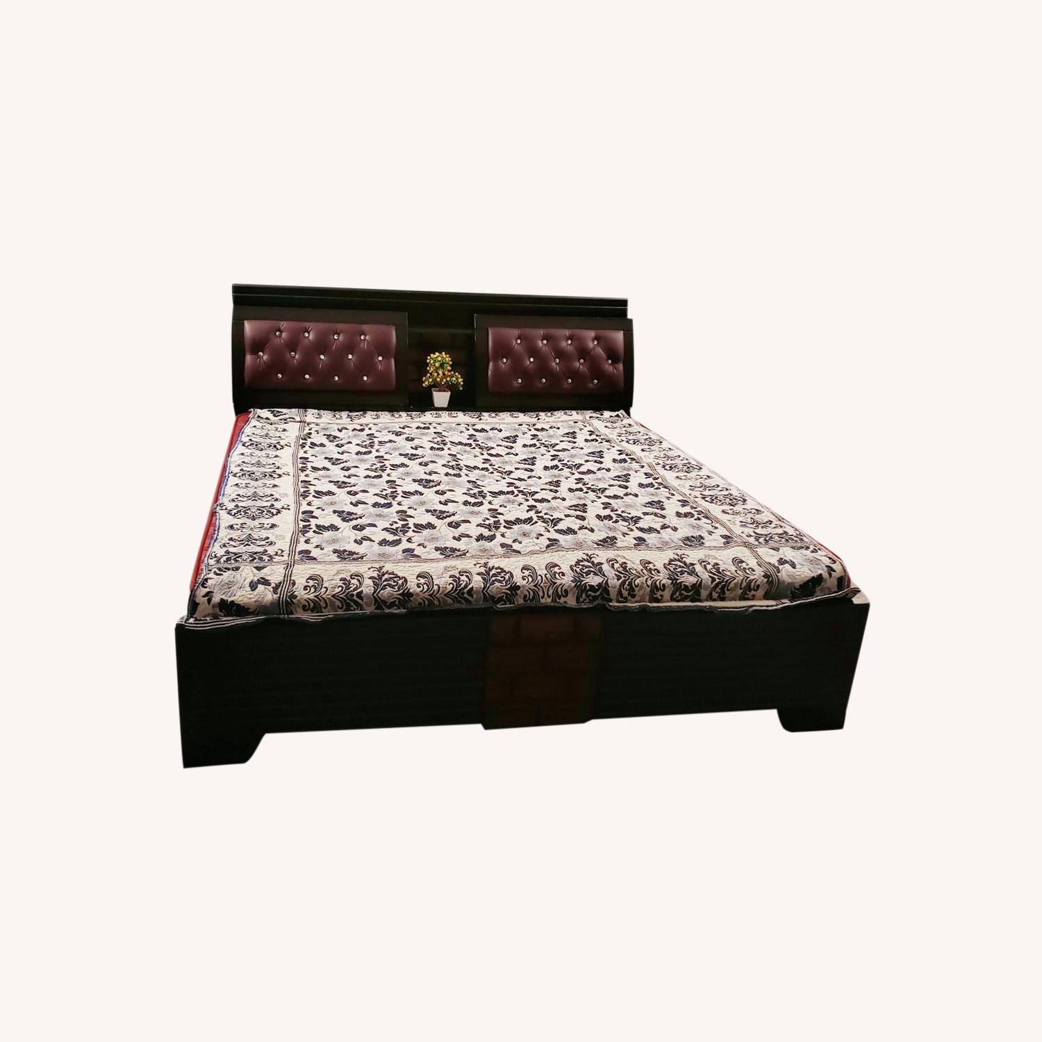 Seller's Notes:Teak Wood Bed , Chocolate Brown color , King Size , Gently Used , Made in India , Less than 4 years old Lots of STORAGE! 2 side drawers, 2 back pocket drawers, cup/bottle holder space between the cushioned back. Beautiful finishing & design