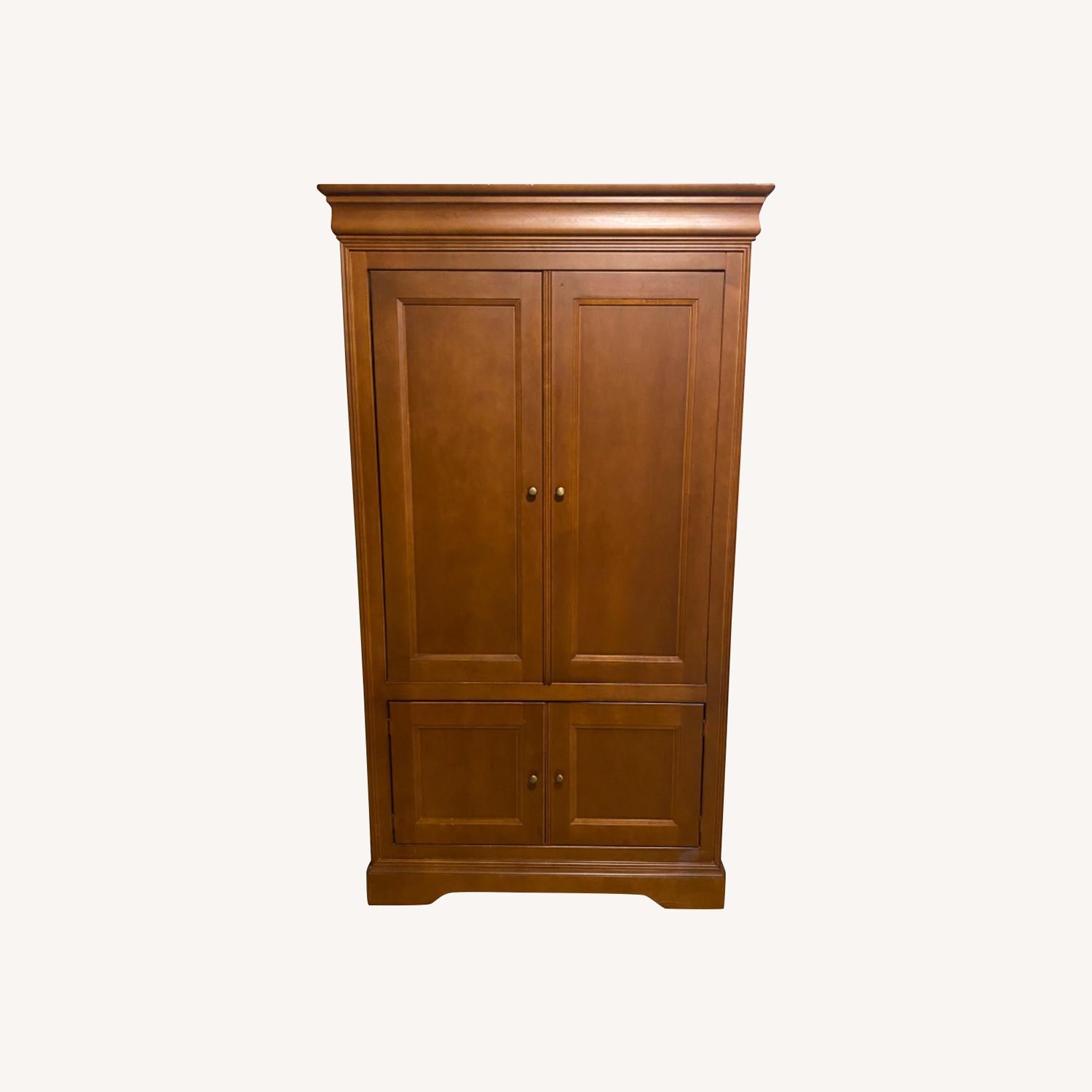 Seller's Notes:1 condition: excellent make / manufacturer: Original Door Store size / dimensions: 39"W/20.5D/75"H Cabinet blends beautifully with all decor styles. Can also be used as a closet by inserting tension rod. Well built. Doors slide in on easy gliders. Moving must sell. 39”w/29.5”d/75”h Interior: 31”w/45”h Can tack a piece of fiberboard to use as a back panel. I removed it for easier access to any cords or wires. It originally was just a piece of fiberboard tacked on. Love this piece!