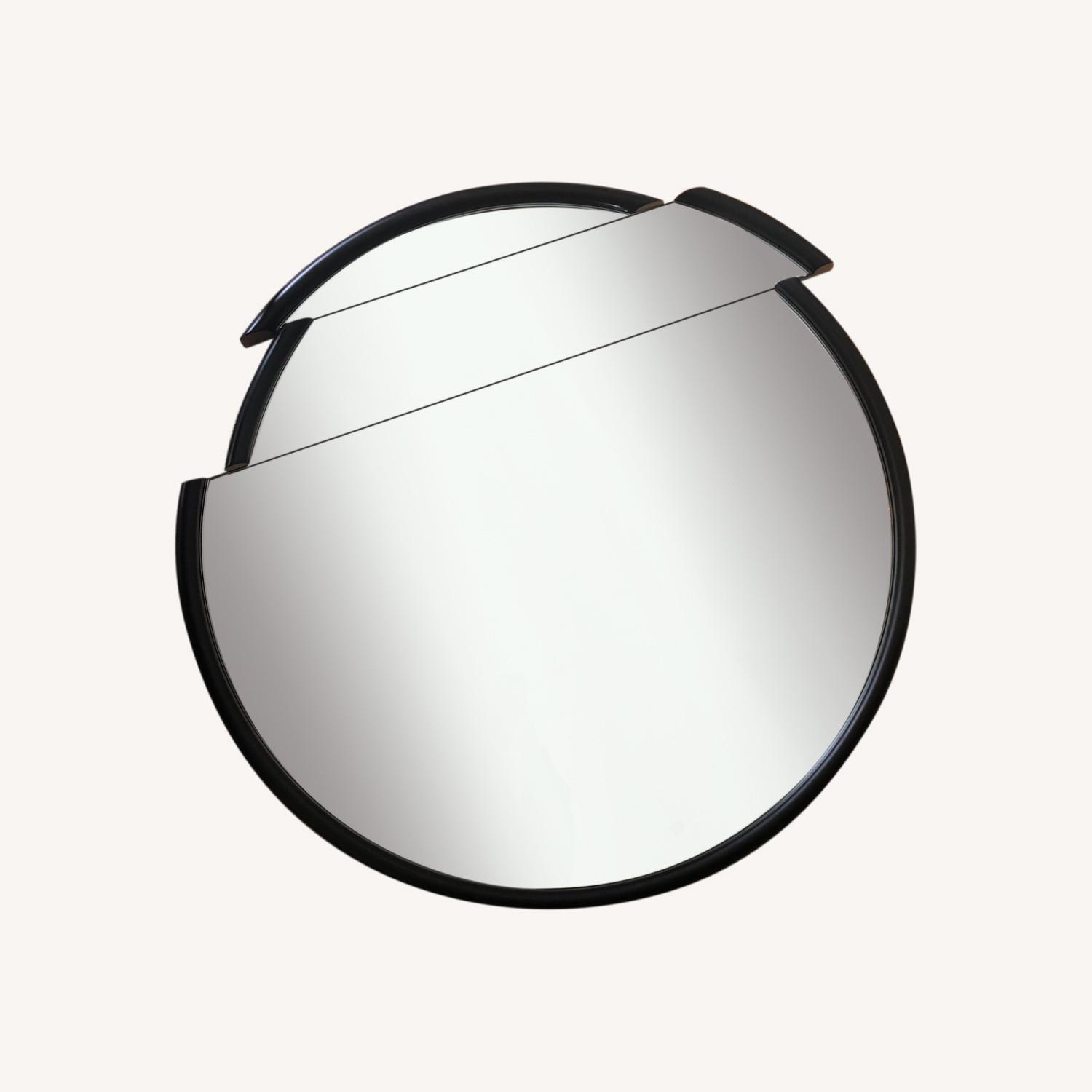 Seller's Notes:Never been hung mirror in brand new condition! Versatile piece that pairs nicely with many different types of decor. A precision cut slice, shifted from its original position reveals an oak trimmed section of the black frame on the Split Mirror.