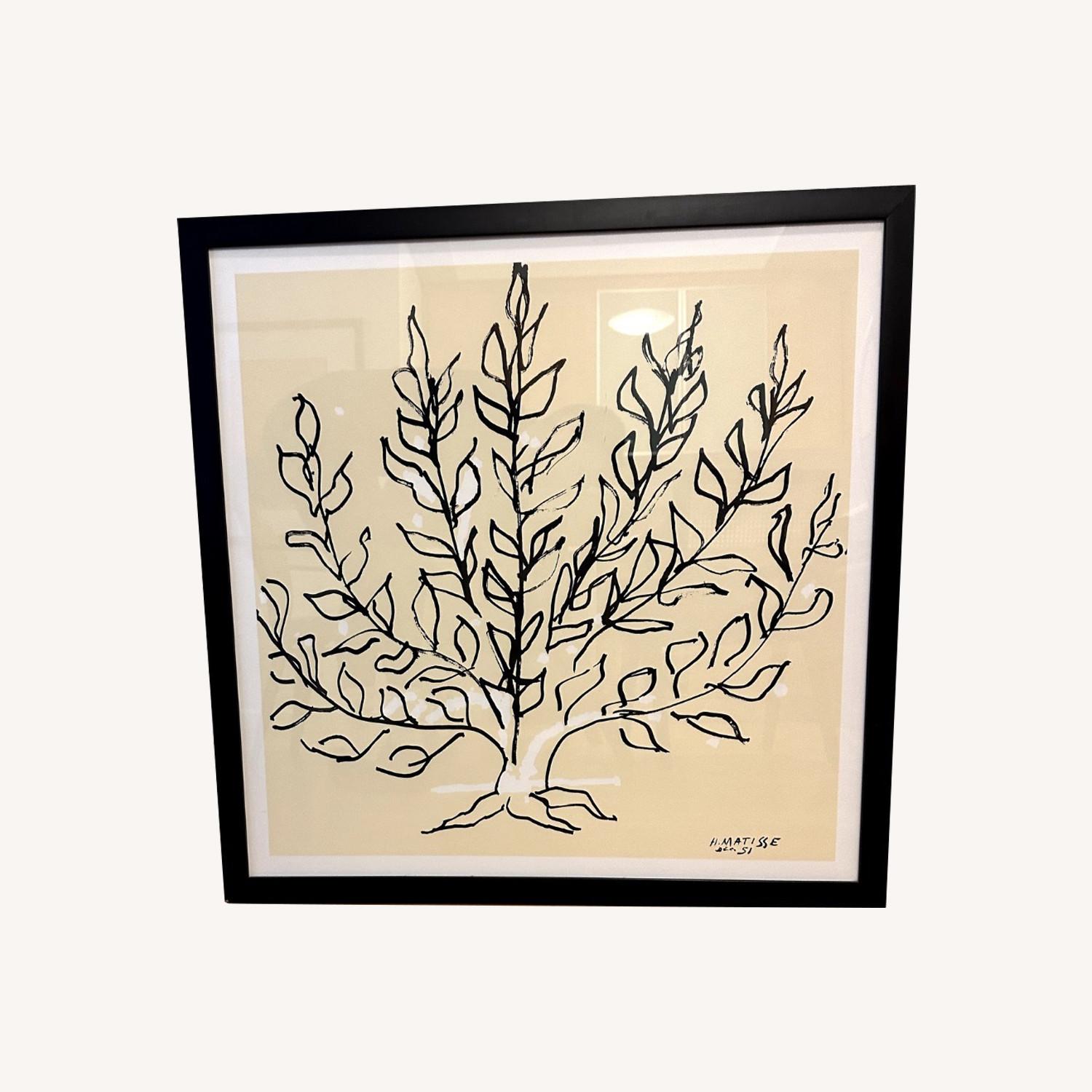 Seller's Notes:Frame Matisse print. Wood frame + glass. Wire back for wall hanging. Paper is slightly blemished and ripped on back but print in good condition.
