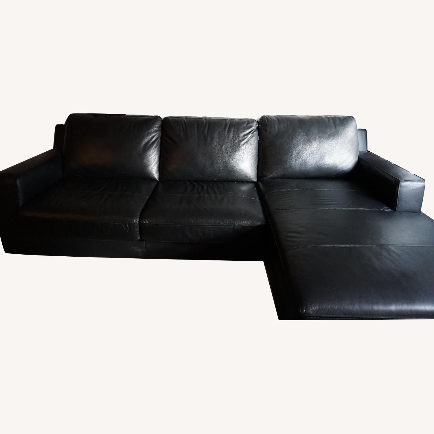 Seller's Notes:L-shaped Black Leather Sofa with Chaise Lounge and Memory Foam Pull Out Bed Originally purchased ~2 years ago from The Smart Sofa for $2,999 (receipt attached).
