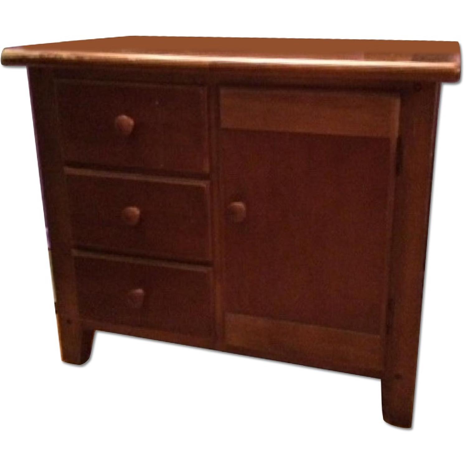 Seller's Notes:Entertainment Center set. Larger piece holds 42' flat screen TV. Underneath three shelves for CD player and storage. Three drawers on tracks holds CDs, etc. Smaller piece holds radio and speakers. Three drawers for storage and one cabinet with open space. Nice set if you like simple wood style. Simple and efficient. Large piece has holes on top to hold Flatscreen.