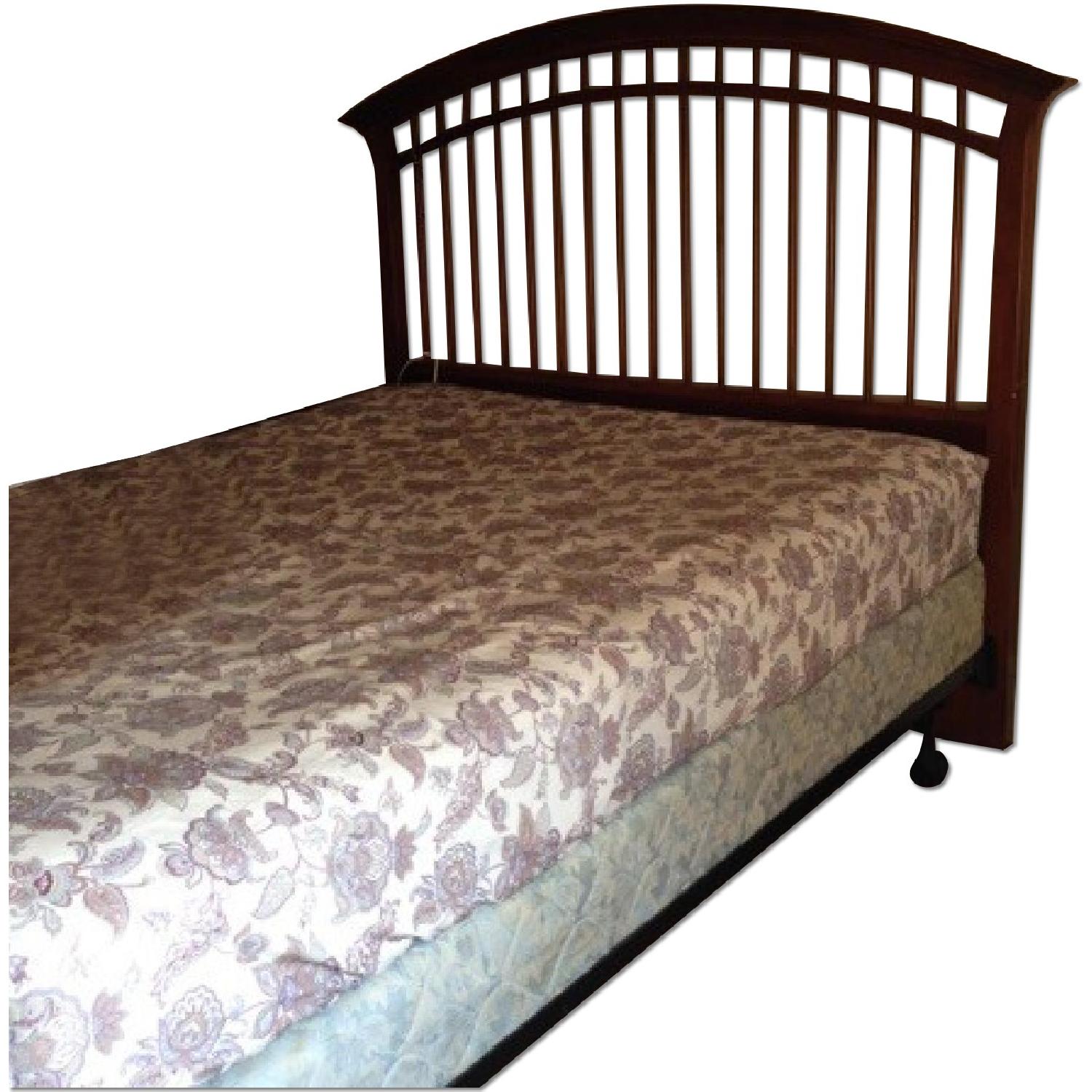 Seller's Notes:6-piece bedroom set include: Queen size metal bed frame + Wooden Headboard 1 tall dresser with 6 large drawers 1 wide dresser with 4 large drawers + 6 small drawers 1 mirror (above wide dresser) 2 night stands with a drawer Made of solid wood. Manufactured in the USA in North Carolina by Thomasville. Purchased in 2010 for $4,000. Good condition overall. Minor wear and tear. One of the nightstands has some water marks on top (see 2 last pictures for detail). The other one is in great condition. ** Must go by Sunday October 18th. Dimensions: Tall dresser: 60 3/4" H x 42" W x 19 1/4" D Wide dresser: 38 1/4" H x 64 1/4" W x 19" D Mirror: 50" W x 43" H Night stand: 28 1/2" H x 26" W x 17" D Headboard: 56 1/4" H x 64" W (69"W on top portion of headboard). Reason for selling: Downsizing from a house to a smaller apartment.