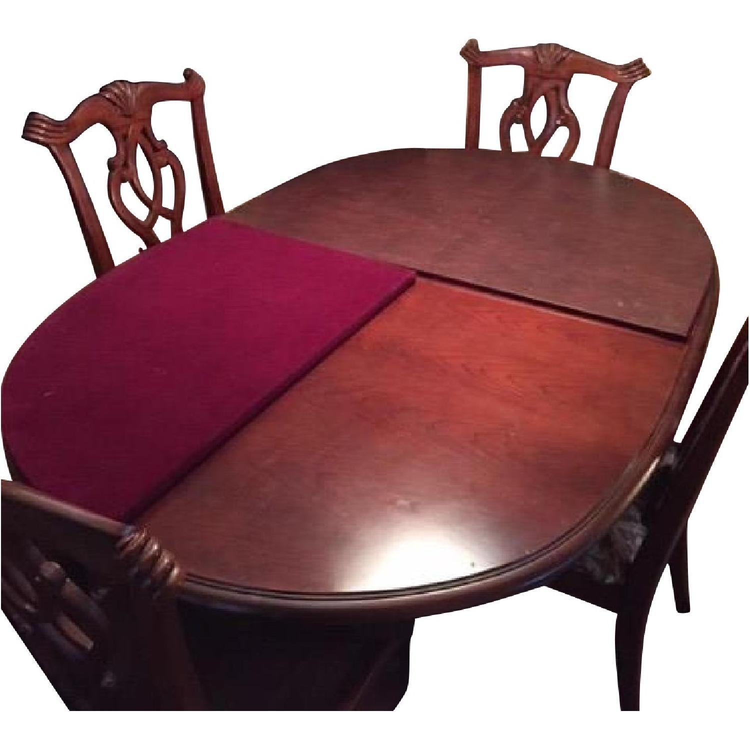 Seller's Notes:2004 Thomasville Full Dining Room Table Set 4 Chippendale chairs 2 Chippendale arm chairs Comes with leave to extend table to 109" long Comes with protective padding for the table top Comes with protective covers to store the leave extension LOCAL PICK UP AND CASH ONLY (No Pay Pal) Located in Albany, New York GREAT CONDITION