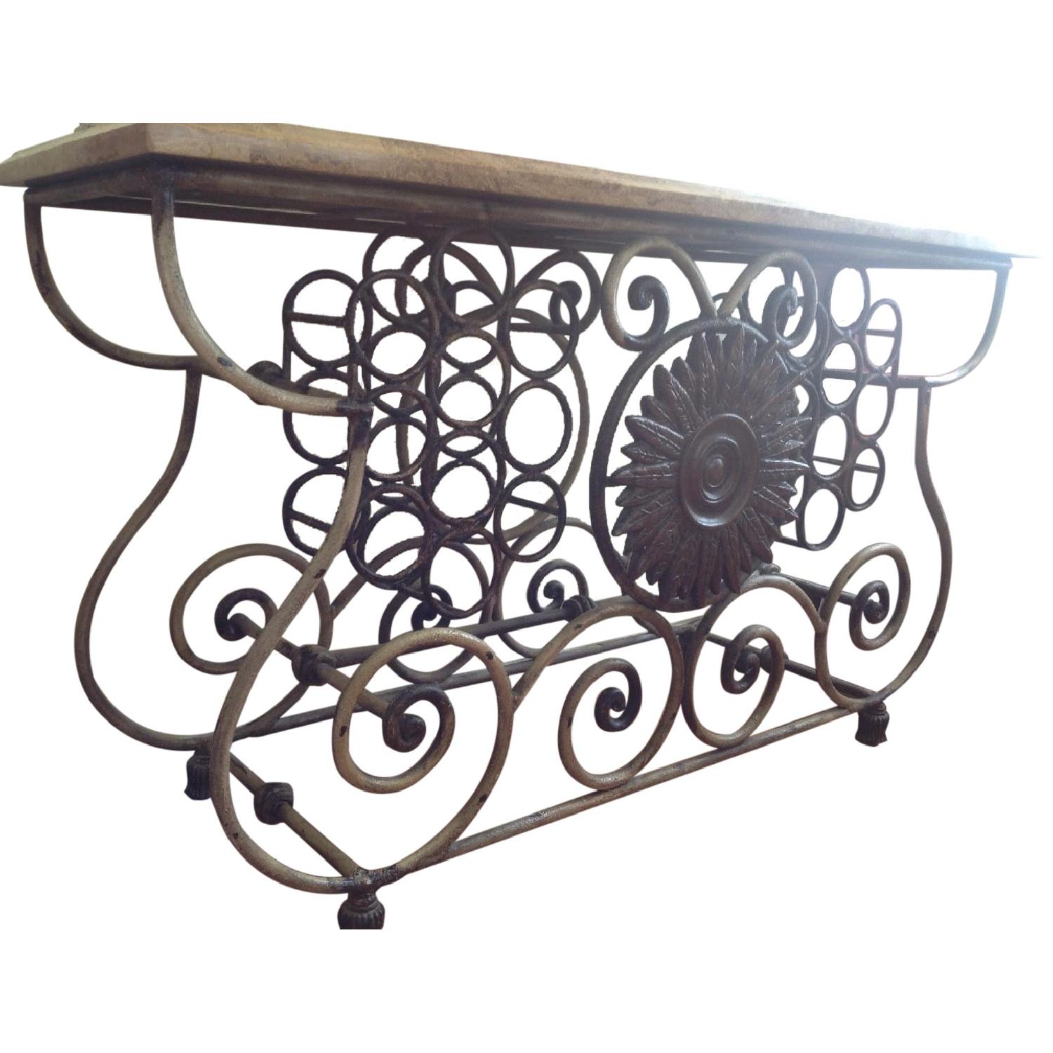 Seller's Notes:Mediterranean style with travertine top and iron bottom Beautiful and elegant piece in a room Do not want to part with it, but need money for a pilgrimage