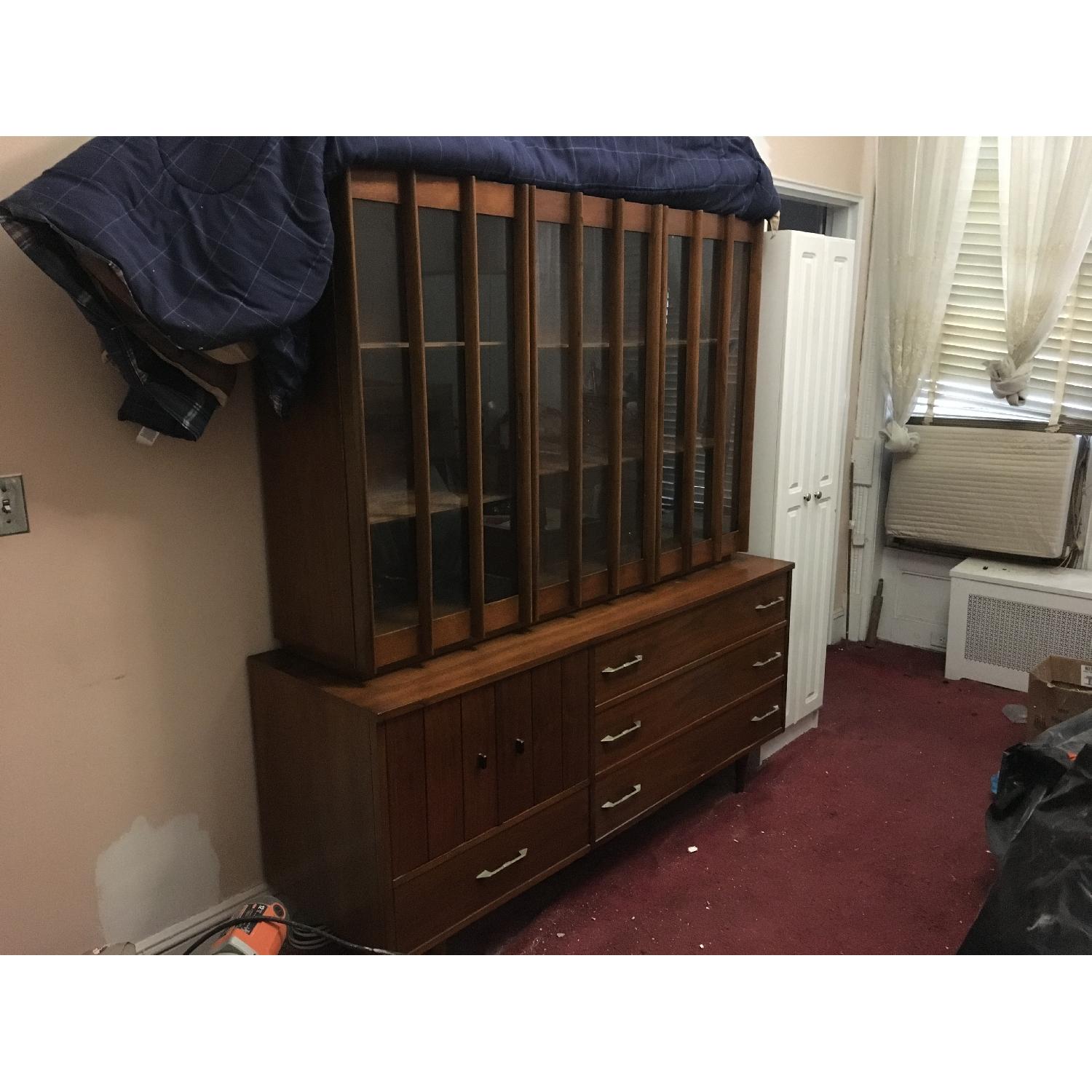 Seller's Notes:Another memorable piece from my grandparents. This piece has been in our family for 3 generations. It’s a two part China cabinet top and bottom. Glass doors with plenty storage space for china and glasses. On the bottom there are three drawers on the right perfect for your table lines. On the left bottom portion there is a double door space and a smaller drawer. Family members have their own furniture and I’m redecorating and I can’t see this becoming garbage this is why I am parting with this piece.