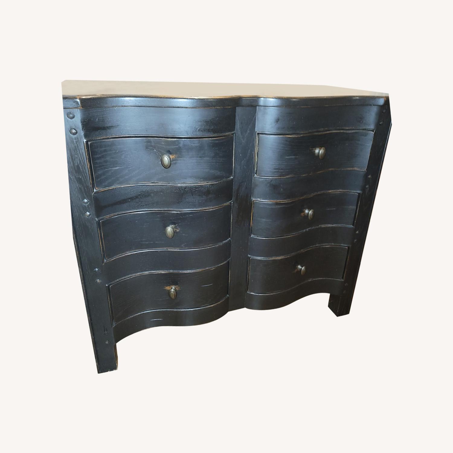 Seller's Notes:Part of Thomasville Furniture Rustic Valley collection. Beautiful solid oak wood with curved scallop design and rustic finish.