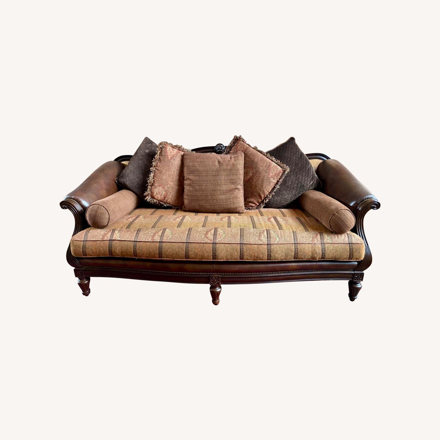 Seller's Notes:Thomasville large 3+ seater sofa, brown with leather and fabric