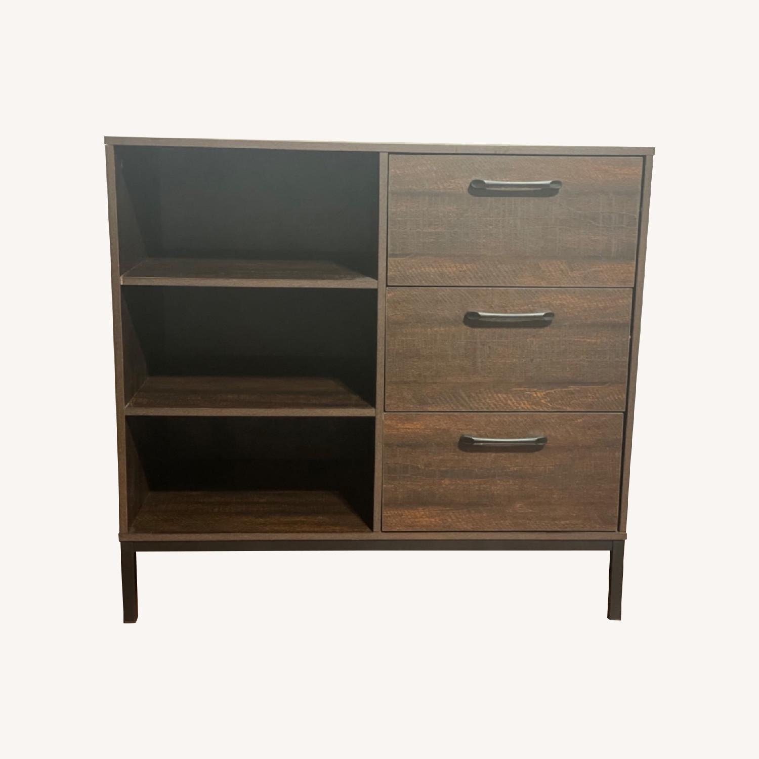 Seller's Notes:Three shelves and three drawers, dark brown in good conditions