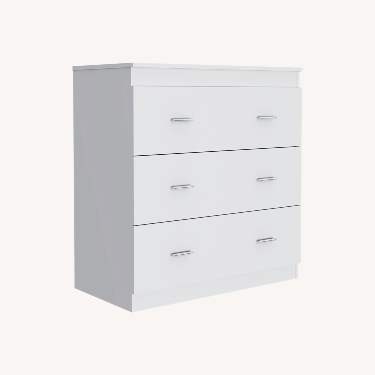 Seller's Notes:"Whysk Three-Drawer Dresser, this piece is part of a new and limited-edition classic series. It is a beautiful extra storage space for your clothing, books, or anything you choose, with a modern touch with its metal hardware and spacious three-drawer design (27.95''W X 23.2''H); moreover, its Superior Top (35,5'') is perfect for customizing it in your way with your favorite decorations. Designed with elegant white manufactured wood finish. Dimensions: Height: 33,50"" Width: 31,50” Depth: 16,38 “ Furniture Type: Ready to assemble (full assembly required).Certifications: CARB phase II compliant – TSCA Title VI compliant.Warranty: 1-year warranty coverage in wooden parts- 1-year warranty coverage in hardware pieces since its manufacturing date is found in the lot number printed in the product box.Shipment details: Free shipping to the 48 contiguous states - delivery time: Between 2 and 5 days depending on the customer's location, season, and weather factors. Other details: This product does not include decorative or background elements; Check that the box is in good condition, and well packed, and check with the help of the manual that the corresponding parts have been included; For more information regarding warranty, shipment details, cancellations, returns & replacement parts go to the bottom section of our website to learn more; Installation & Assembly Instructions included."