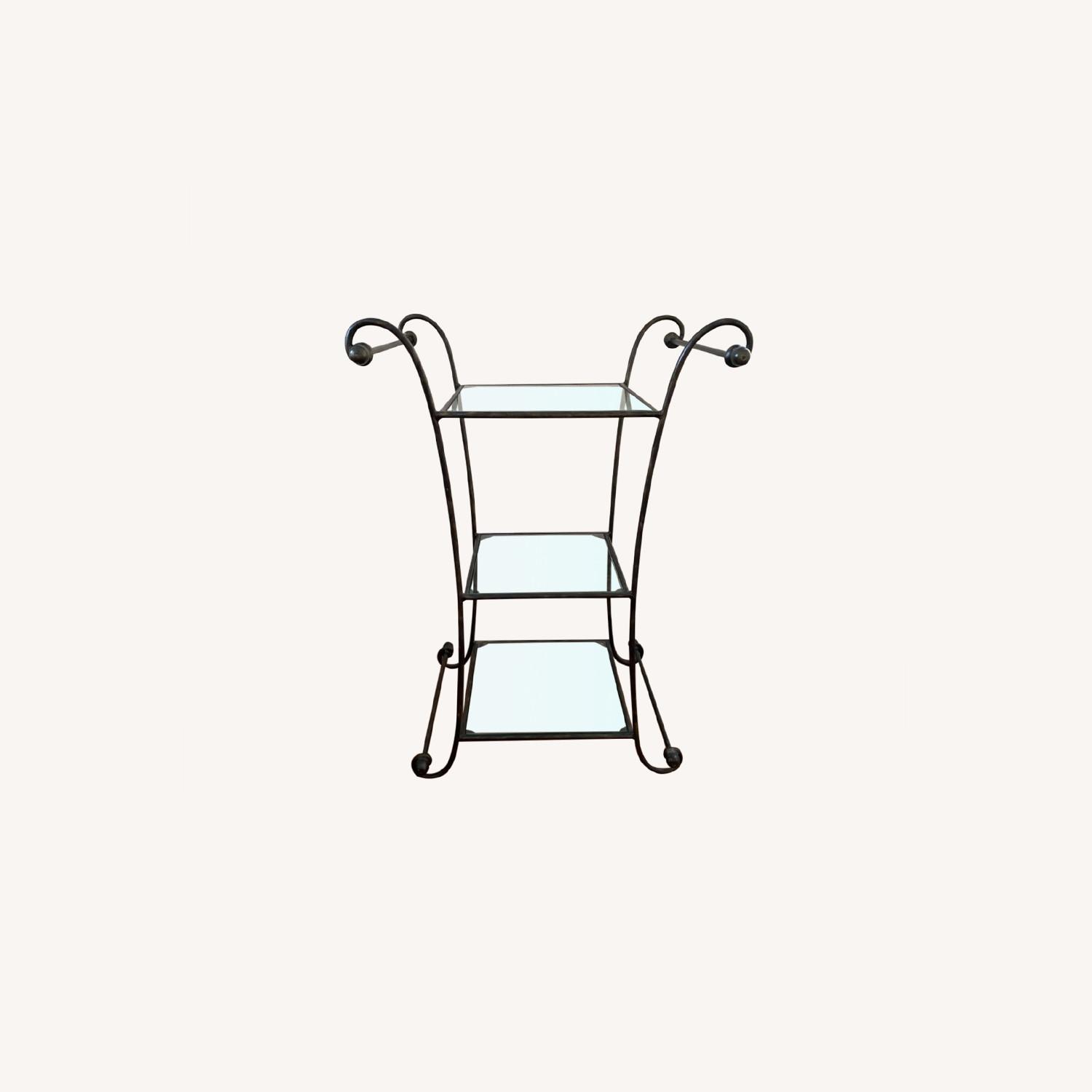Seller's Notes:This is a three glass shelf side table. The middle glass measures 10.5 inches and the top and bottom glass shelves are 12 inches. The overall piece measures 13 inches depth 20.5 inches wide 32 inches height. In great condition. I am selling this as I am moving and no longer need it. Minor cosmetic scratches that aren’t noticeable. Originally $250.