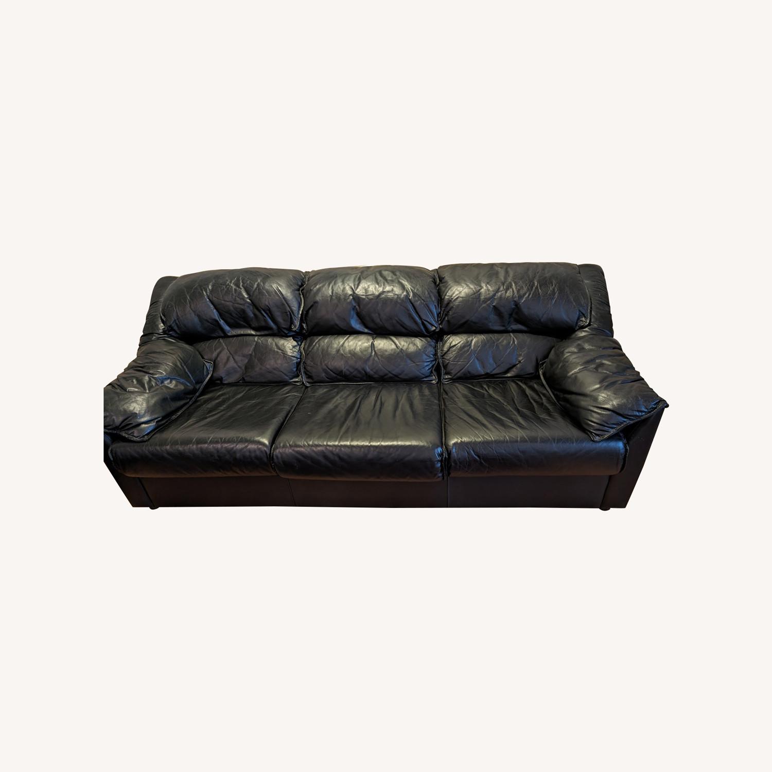 Three Seater Black Leather Sofa