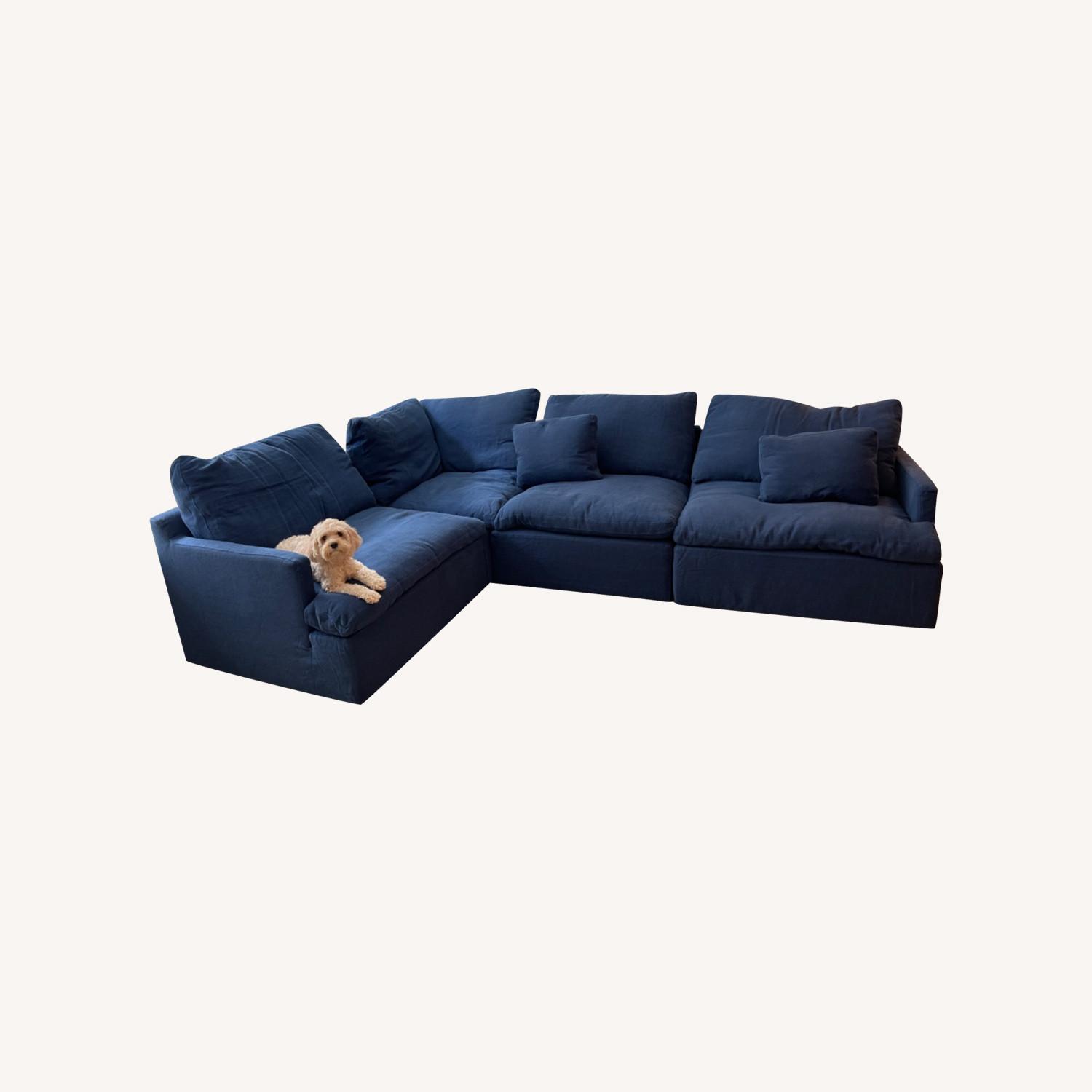 Seller's Notes:This is an amazing couch. Only selling it because it doesn’t really fit in our new apartment. It’s an l-shaped couch (121 inches long on one side and 83 inches on the other side). The cushions and pillows are all foam core wrapped in down. The brand was started by the designer of the RH Cloud Couch, which sells for $10,000+. We have a dog, but he’s fully non-shedding and hypoallergenic. The couch is routinely cleaned. There is one stain on the back corner (as pictured) from a spot cleaning. If the couch is against a wall it will not be seen. Otherwise in excellent condition.