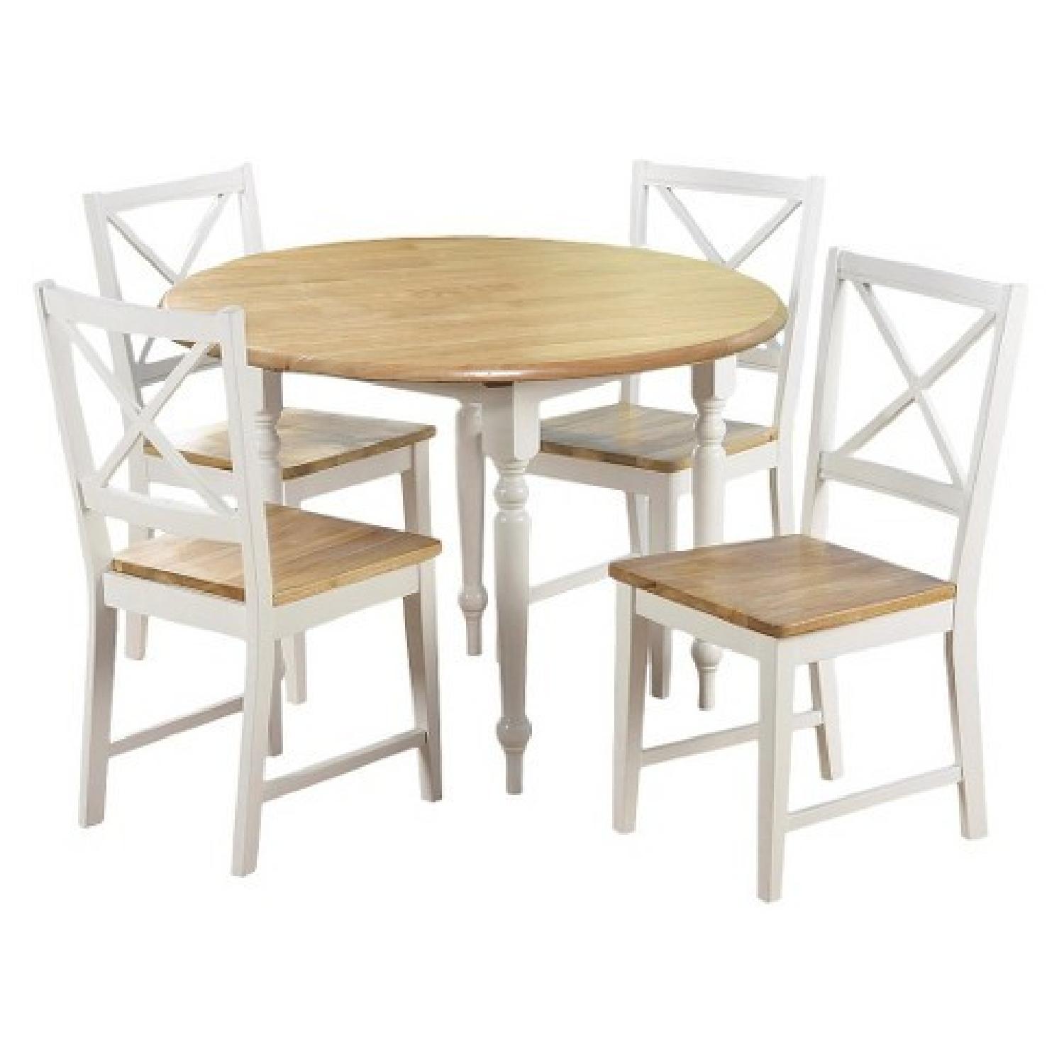 TMS White/Natural Round Drop-Leaf Dining Table w/ 4 Chairs
