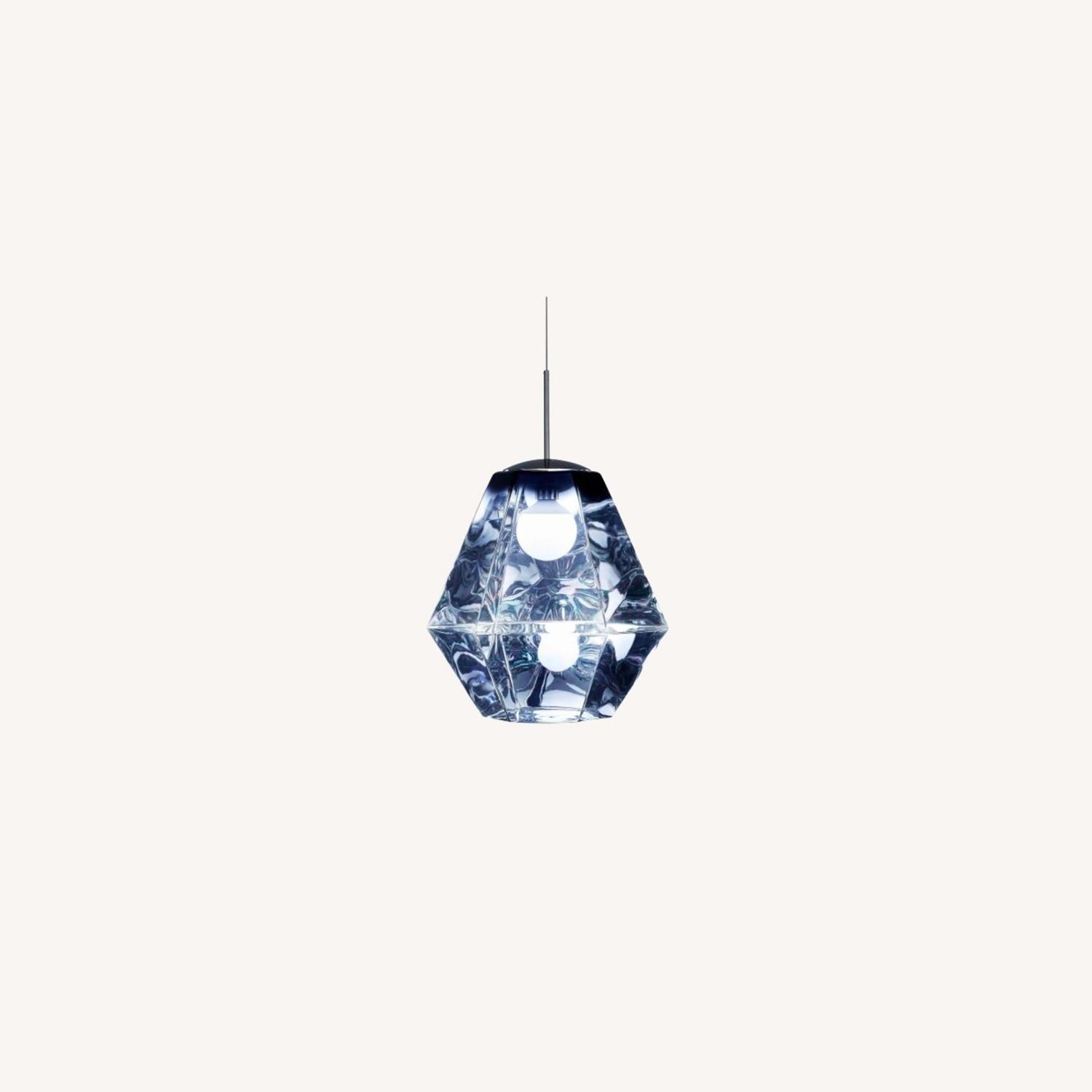 Seller's Notes:New In Box! Authentic Tom Dixon! *Color: smoke *Finishes: chrome *Condition: New In Box Futuristic and faceted, this Cut tall pendant is an exercise in optics. Offered for sale is a brand new in box pendant light - it is spectacular and I wish we could use it in our space but we changed the decor colors. The listing pictures shows the colors - when turned off it is a bluish hue and when switched on the light beneath transforms the light to reveal a translucent kaleidoscopic gem. Hypnotising reflections of the luminous orb within repeat infinitely within the diamond cut, vacuum metallized interior. The light for sale is in smoke finish with chrome finishes.