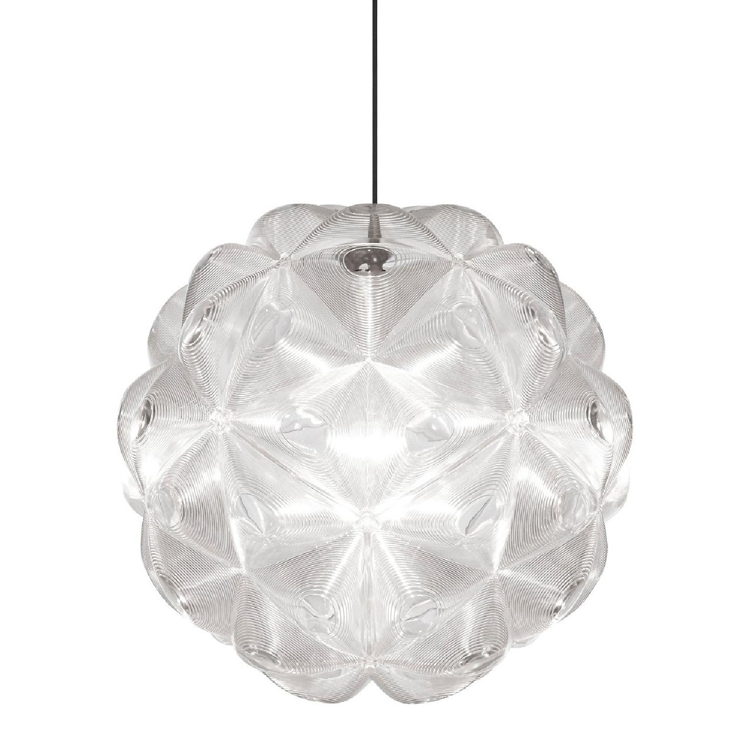 Seller's Notes:Moving sale. We bought the Tom Dixon Lens Pendent Light a year ago, and will not have space for it in the new apartment. The light is in excellent condition and look brand new. Please note, there is a a small gap on the plate (medallion) to let the wire through. The plate can be ordered from Tom Dixon Store. Details of Tom Dixon Lens Pendent Light Manufacturer: Tom Dixon Design by: Tom Dixon Manufacturer Model number: LENS01UL Country of Manufacture: United Kingdom Shape: Abstract Style: Transitional Color:Clear Finish: White Dimensions in inches and cm Diameter: 23.2" (59 cm) Lamping 1 x E26 60W (max) Socket type: E26 Dimmable with external dimmer: Yes Lamping type: Incandescent Material: Polyethylene Listing Type: UL Listed, cUL Listed Lens Pendant Light is one of the best collections from Tom Dixion. It’s the latest output in his long-running obsession with geometry and luminosity. This fixture features a 60-cm clear polycarbonate globe made of 12 pentagonal components subdivided into 5 prismatic triangular lenses that explode and project the source light in all directions.