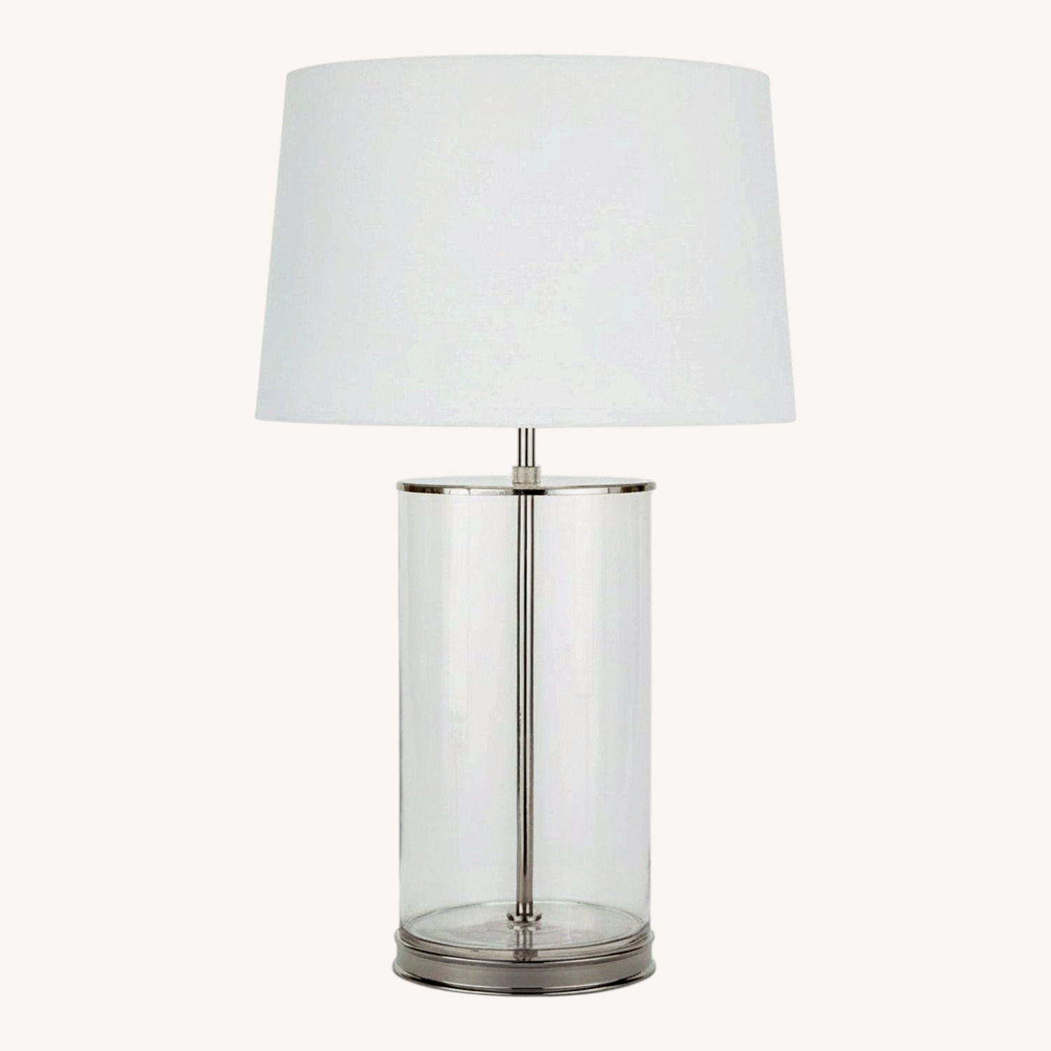 With its classic, cylindrical glass body and polished nickel detailing, the Magelian Glass Table Lamp is well suited to both traditional and modern spaces. Create depth and texture by filling with collectibles such as shells, coral, or other seaside memorabilia for an added air of coastal appeal. The shade and lid easily lift off for arranging and cleaning.
