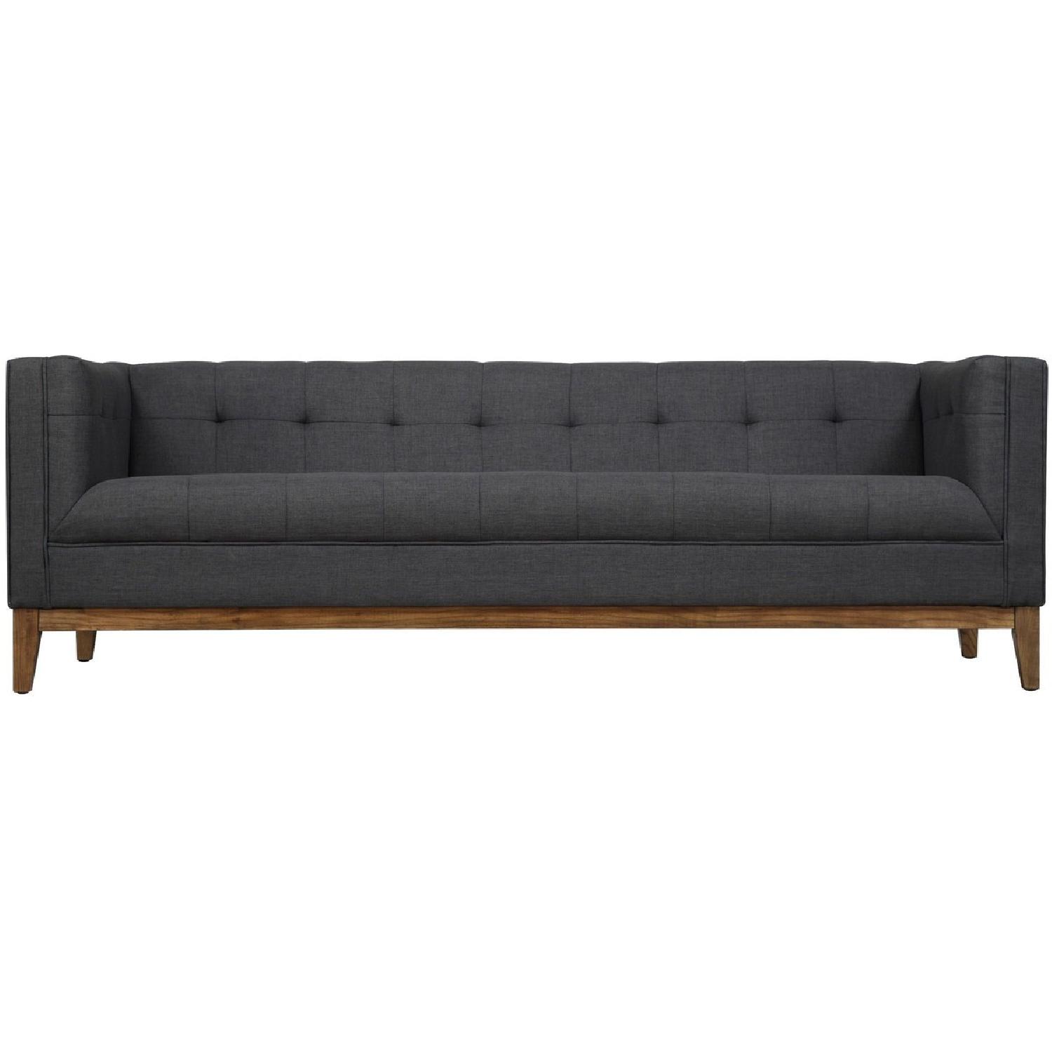Seller's Notes:Inspired by classic Mid-Century design, the Gavin sofa is handmade by skilled furniture craftsmen. Supported with a kiln dried solid wood frame and antique brown Ash wood trim and legs, this sofa is built to last. The Gavin sofa will add immediate style and comfort to any room.SHIPPING TIME FOR THIS ITEM IS 2-4 WEEKS