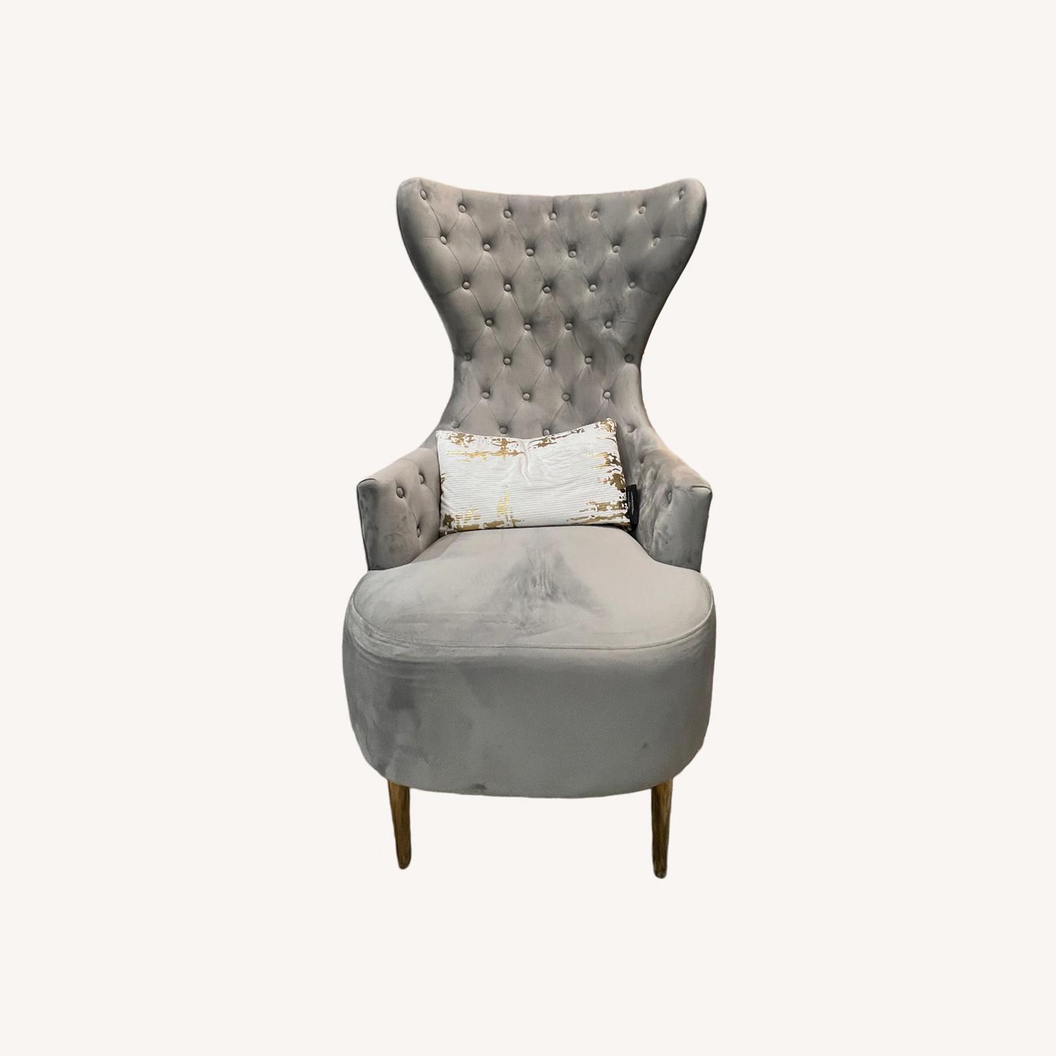 Seller's Notes:I am moving out of state and am selling my lovely TOV Jezebel Velvet Wingback Chair!!! This accent chairs are very comfortable and in perfect condition. The color is a grey natural color and add the perfect touch to one's home! I have 2 available. Charis were barely used. No stains or smudges!