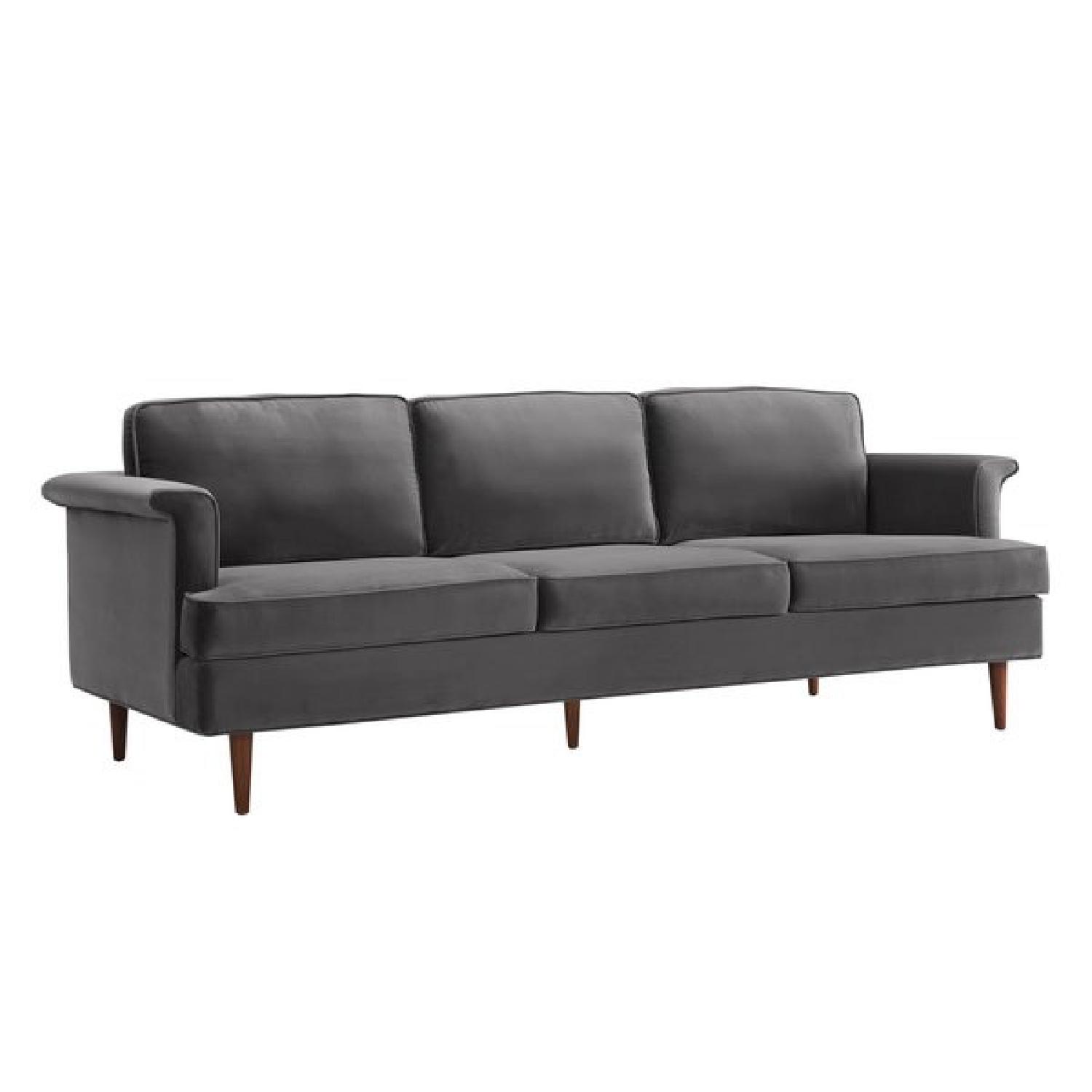 Seller's Notes:With a nod to Mid-century design, we created our gorgeous Porter sofa. The high density foam cushions provide maximum support and comfort while the solid wood frame assures years of enjoyment. This sofa is available in three durable yet sumptuous velvet options featuring this season's hottest hues making it fresh and stylish. Shipping time for this item is about two weeks. SHIPPING TIME FOR THIS ITEM IS 2-4 WEEKS "Sales tax is included in item price."