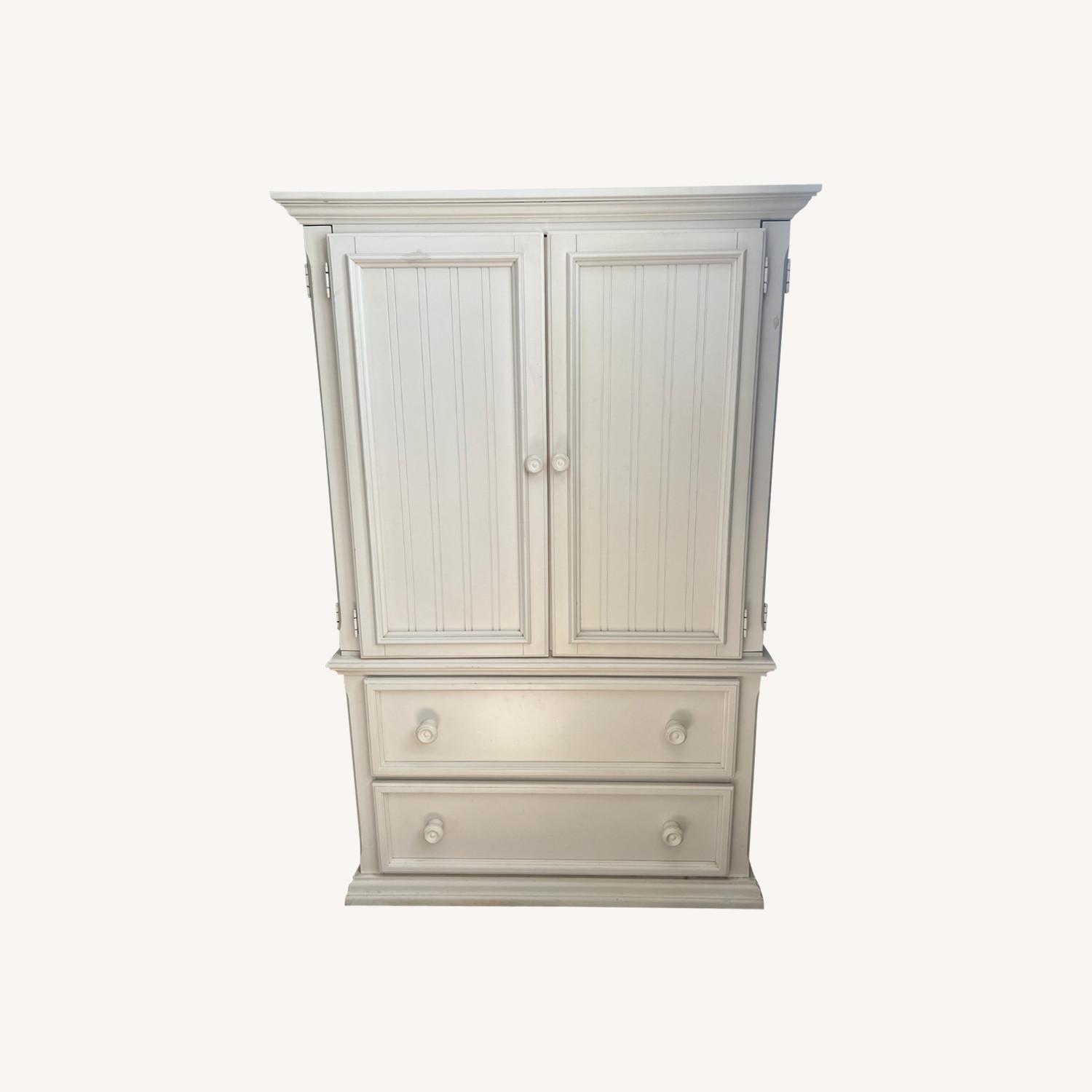 Seller's Notes:Traditional armoire with cutout in the back panel to accommodate media plug-in.