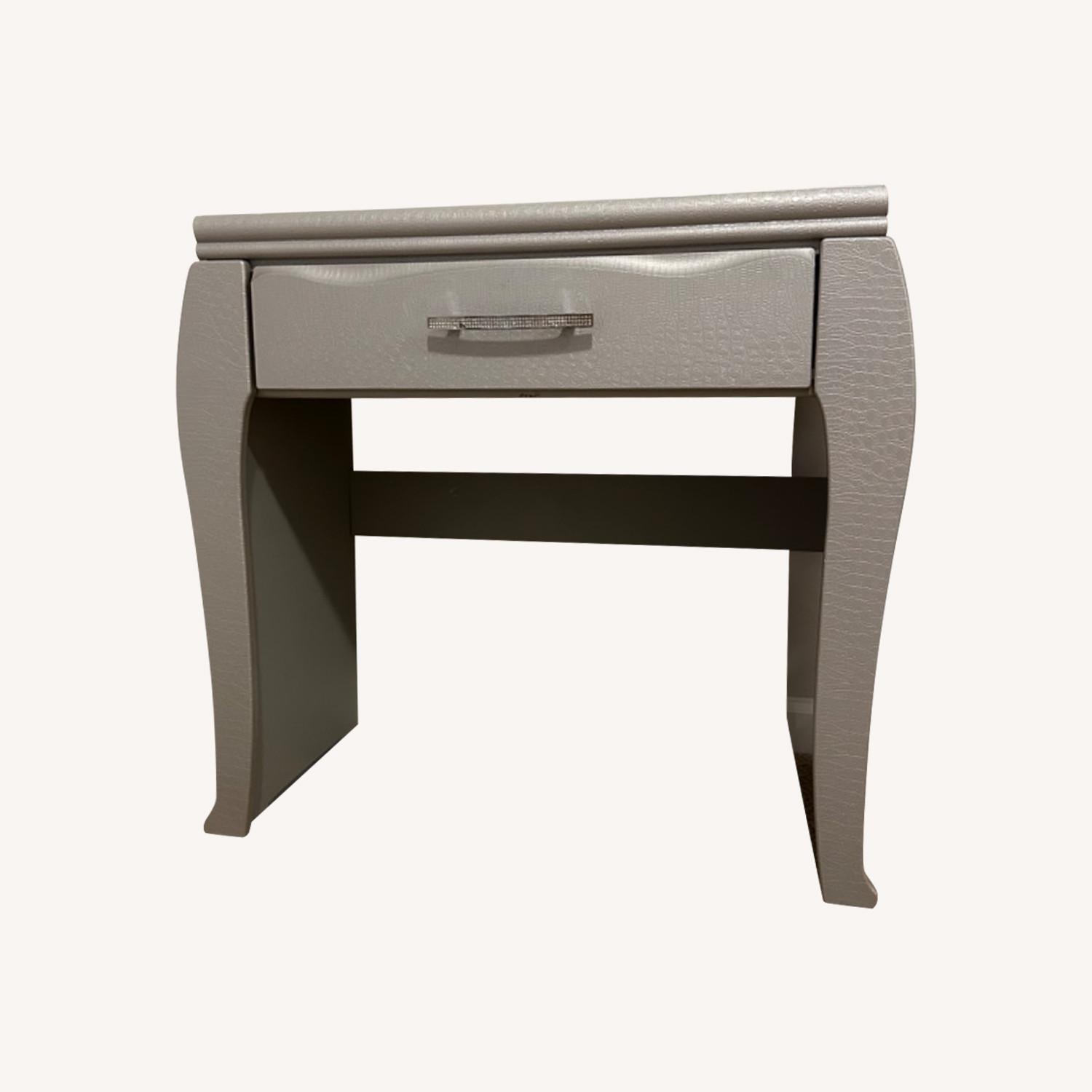 Seller's Notes:A versatile piece that can be used as a vanity or a writing desk, featuring a single drawer for convenient storage. The pearl-gray finish and gently curved legs add a touch of elegance.