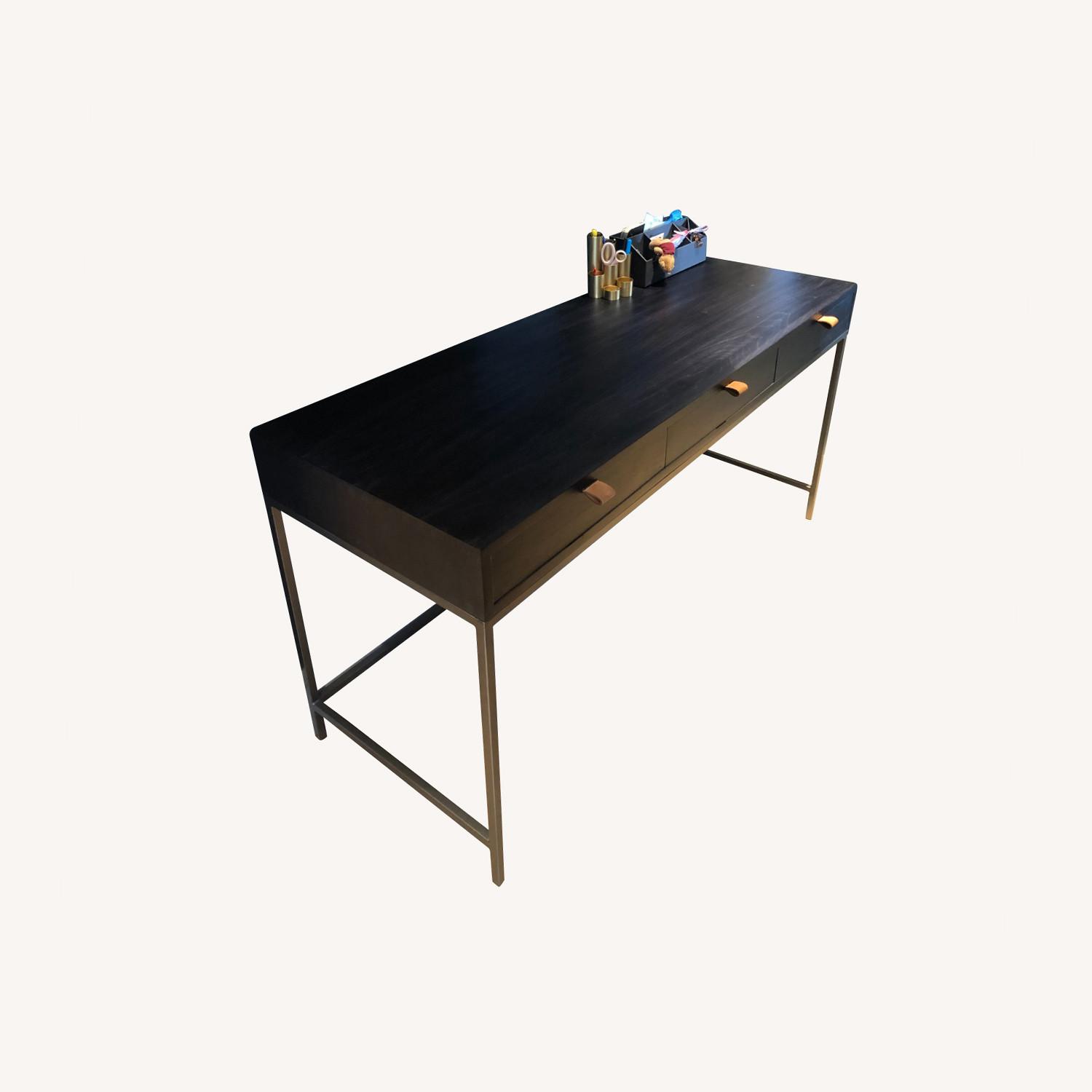Seller's Notes:Tray modular writing desk with 3 spacious drawers. Bought in January 2021 - Brand new condition. We have to make space for upcoming baby, so we have to let it go. It is a beautiful piece of furniture. Material : iron legs, black washed Poplar wood, top grain leather pulls