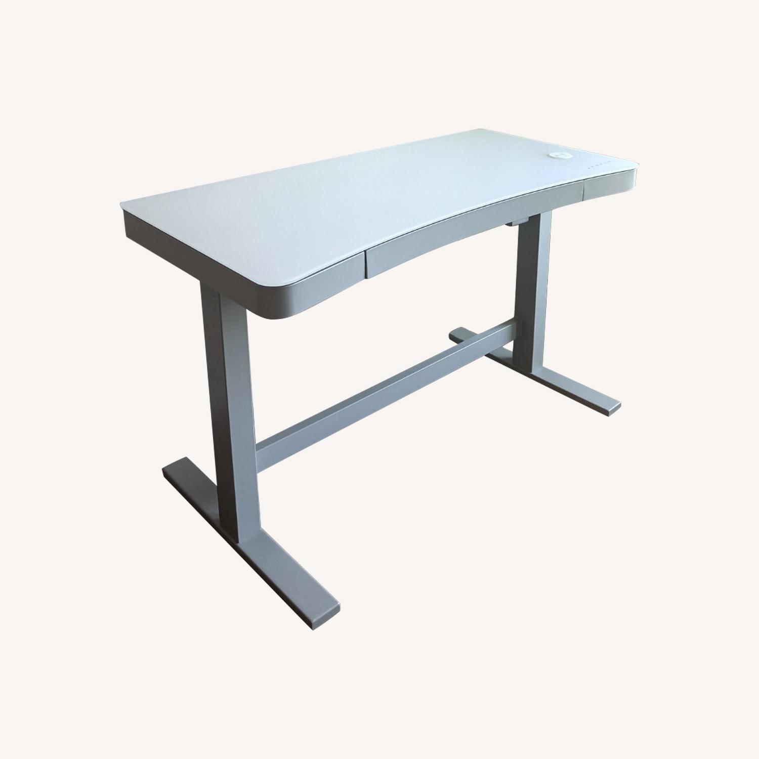 Seller's Notes:Heavy duty slim desk with drawer, wireless charging pad, and adjustable for standing. Perfect for work from home! Excellent condition.
