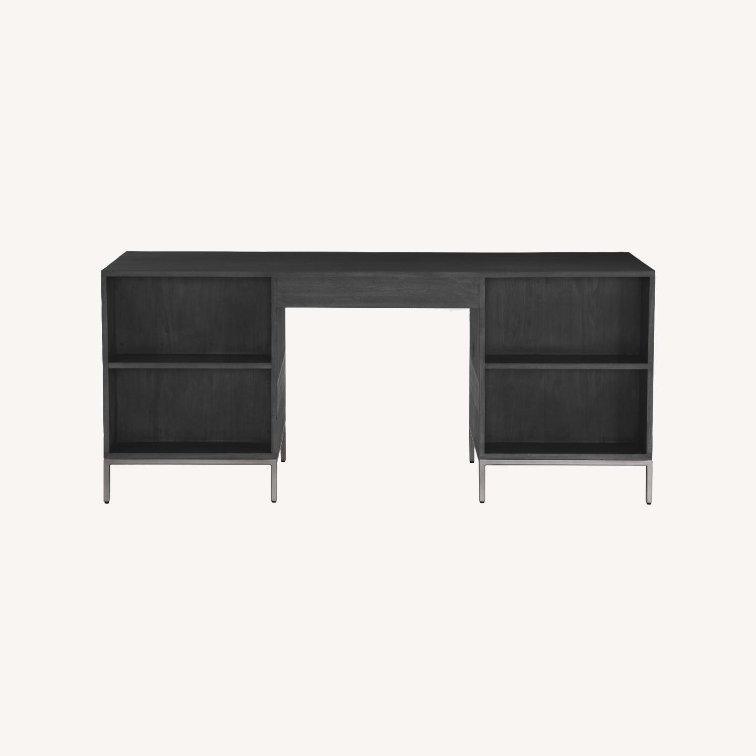 Seller's Notes:Brand new, barely used executive desk. Selling as it is too large for the room where I have moved my office to. Perfect desk to be placed anywhere in an office room - one of the sides has a beautiful detail which could also be used for decorative objects or additional storage. Highlighted in one of the photos are two small scratches on the surface that can be easily fixed with a pen if you can actually see it. "Inspired by clean mid-century design, black-washed poplar offers plenty of desk storage by way of spacious drawers including one perfectly sized for file storage of legal and letter sized documents. Metal-secured leather pulls add a textural element of surprise. Cutouts for cord management. Asymmetry creates a dynamic, modern aesthetic. Impulses from mid-century are reinvented with a mix of warm woods and hard iron. Character walnut and untouched oak reveal knots and natural beauty marks."