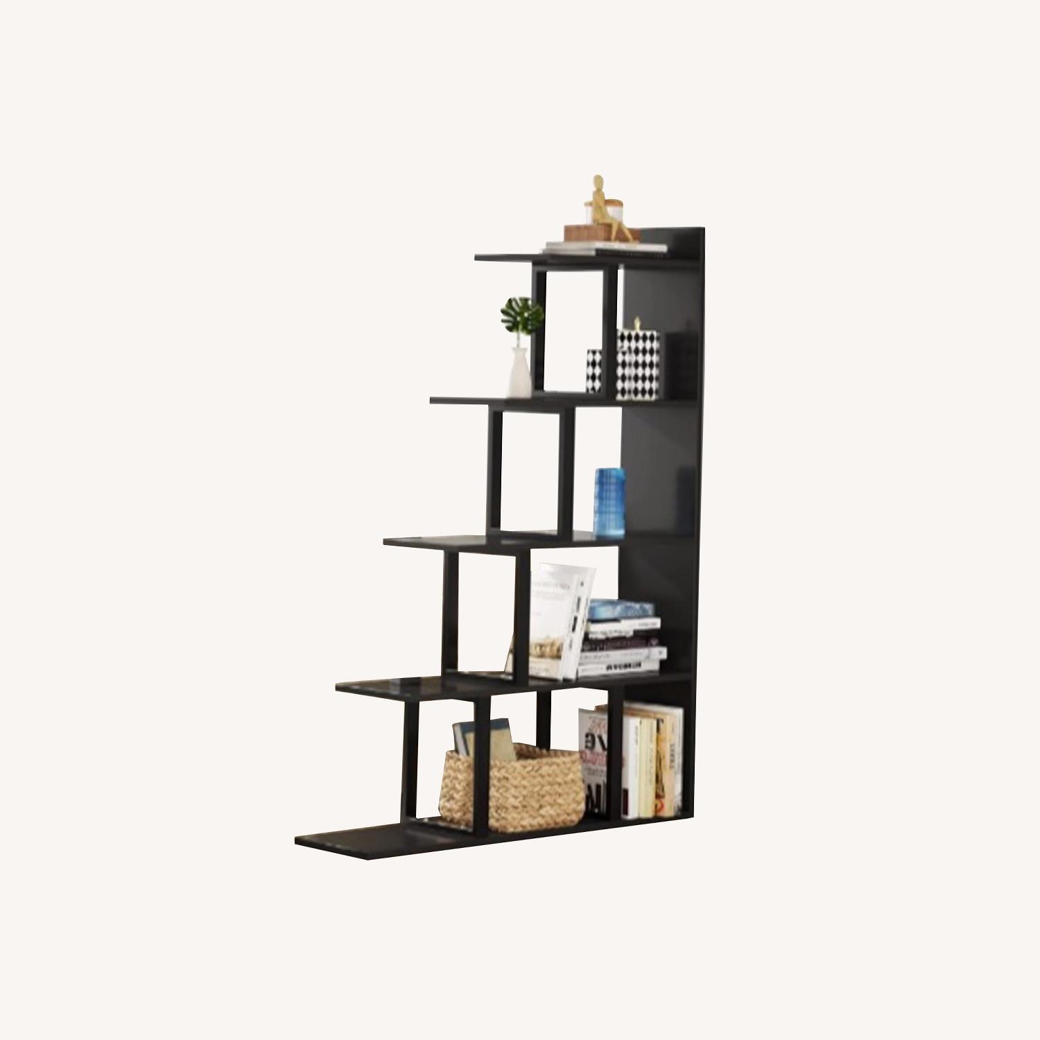 Seller's Notes:GOOD AS NEW 5 tier stepped modern L-shaped bookcase from Tribesigns in black. This ladder corner bookshelf lines up nicely against a wall or corner and instantly elevate your storage to new height without occupying too much space. Perfect for placing books, potted plants, photo frames, handicrafts or other items to keep your room clean and tidy. Constructed with thick particle board and heavy-duty metal frame, this bookcase has super large weight capacity as well as durable structure for optimized strength. Great bookcase, 3 years old with no scratches/wear and tear EXCELLENT CONDITION. Very sturdy and well built.